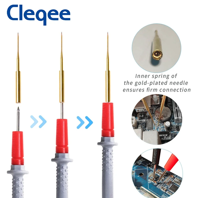 Тестовые провода Cleqee P1505B для мультиметра, силиконовые, с позолоченными точными острыми иглами, штекер типа банан 4 мм, зонд для мультиметра, кабель 1,5 м