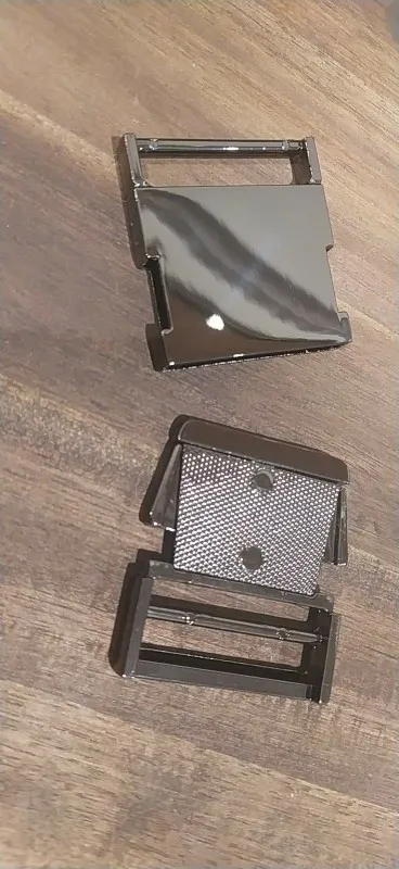 Послали быстро, и добралась пряжка быстро. Покрытие гладкое, заусенцев никаких нет. Размер совпадает. Единственный недостаток на мой взгляд, это наличие свободного хода в закрытом состоянии, а поскольку пряжка металлическая, то она занудно позвякивает