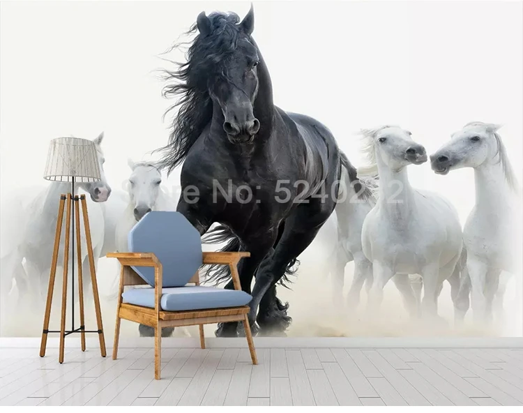 3D фотообои на заказ, черно-белая лошадь, художественная настенная живопись, гостиная, спальня, учебная комната, домашний декор, Настенные обои