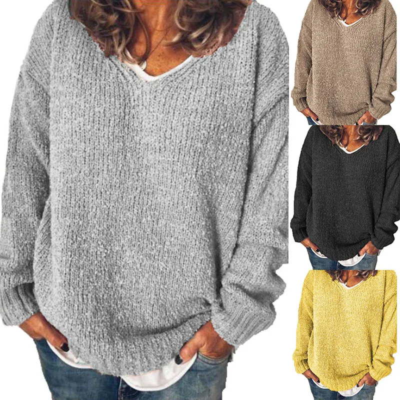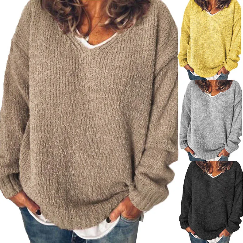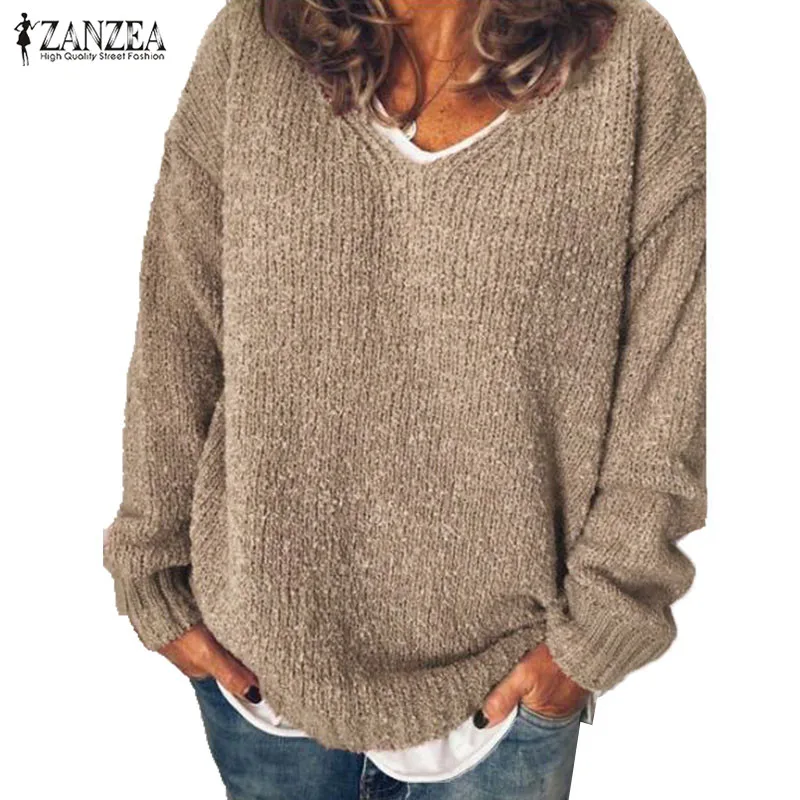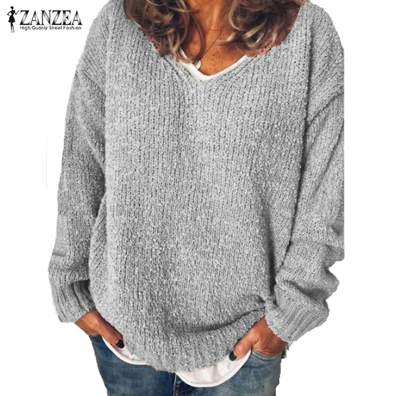 Осенние топы ZANZEA 2021, Женский вязаный свитер, элегантная повседневная рубашка с длинным рукавом, пуловеры с V-образным вырезом, туника, Женская Туника оверсайз