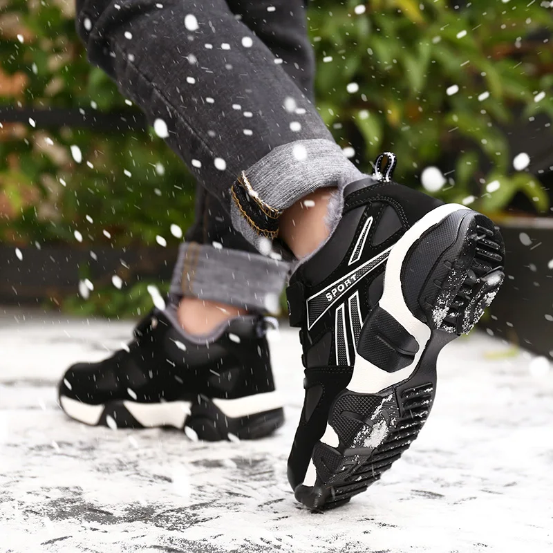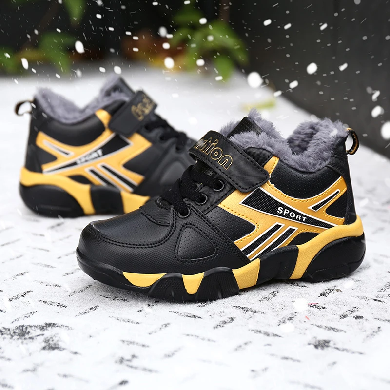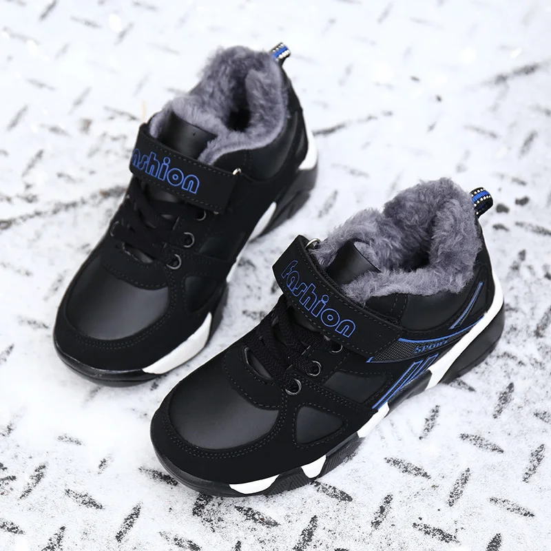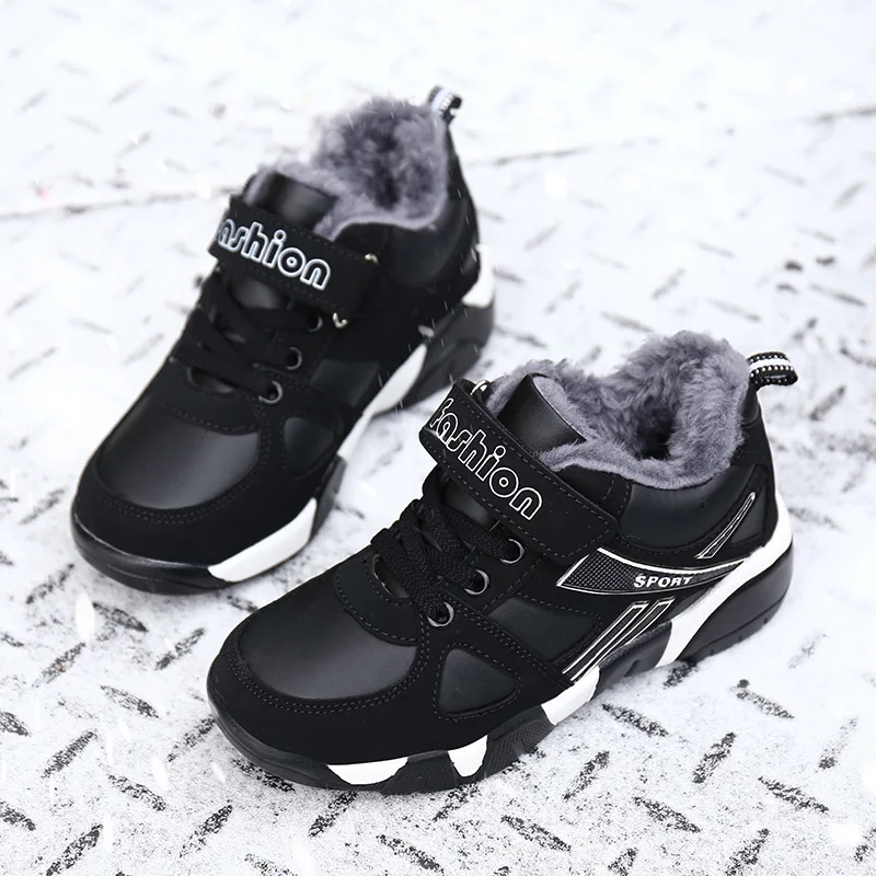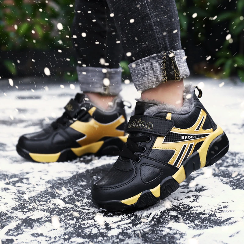 Зимняя Теплая обувь ULKNN для школьников, плюшевые теплые кроссовки для мальчиков, зимняя кожаная Водонепроницаемая повседневная обувь для детей