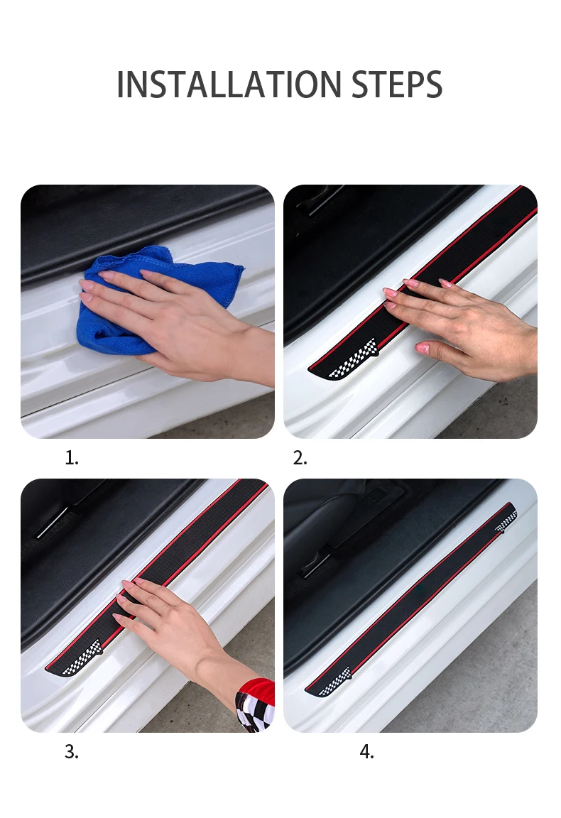 4 шт., универсальные резиновые полоски для защиты порога автомобиля