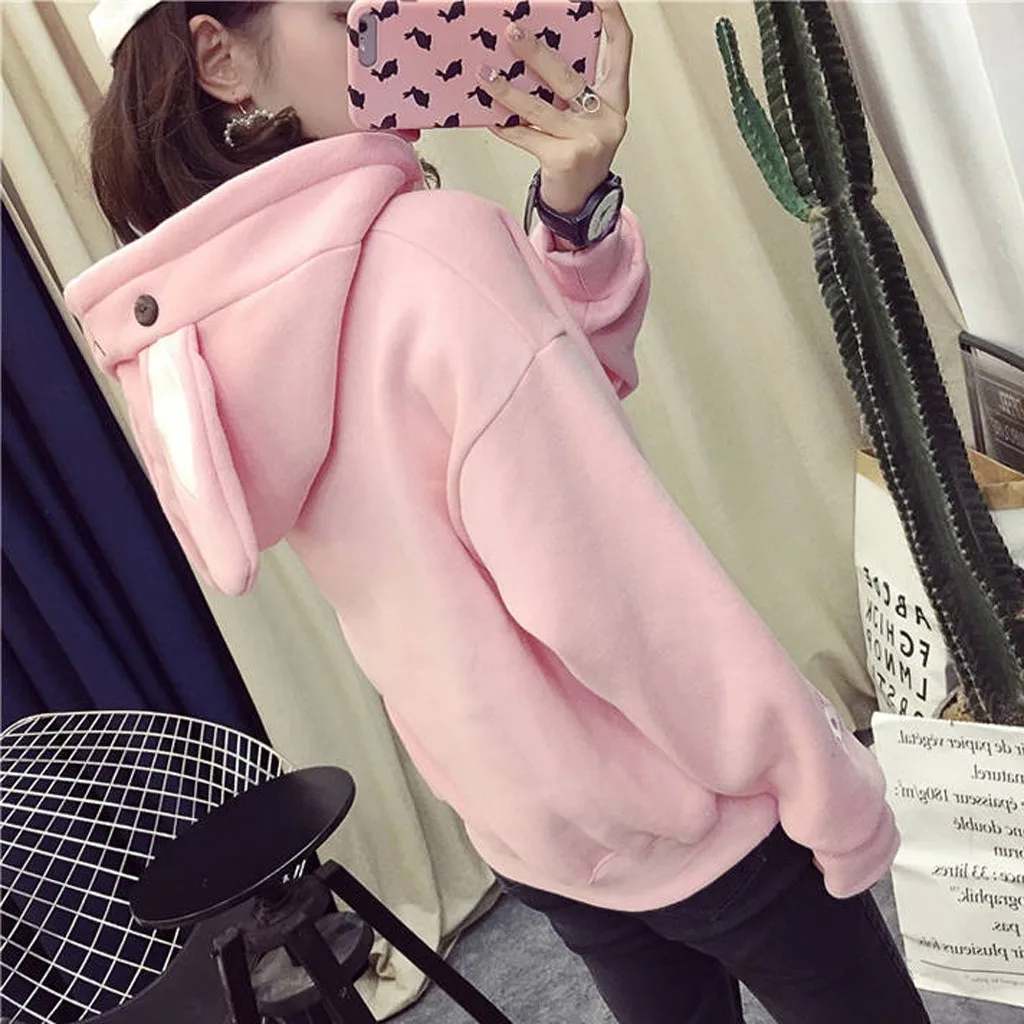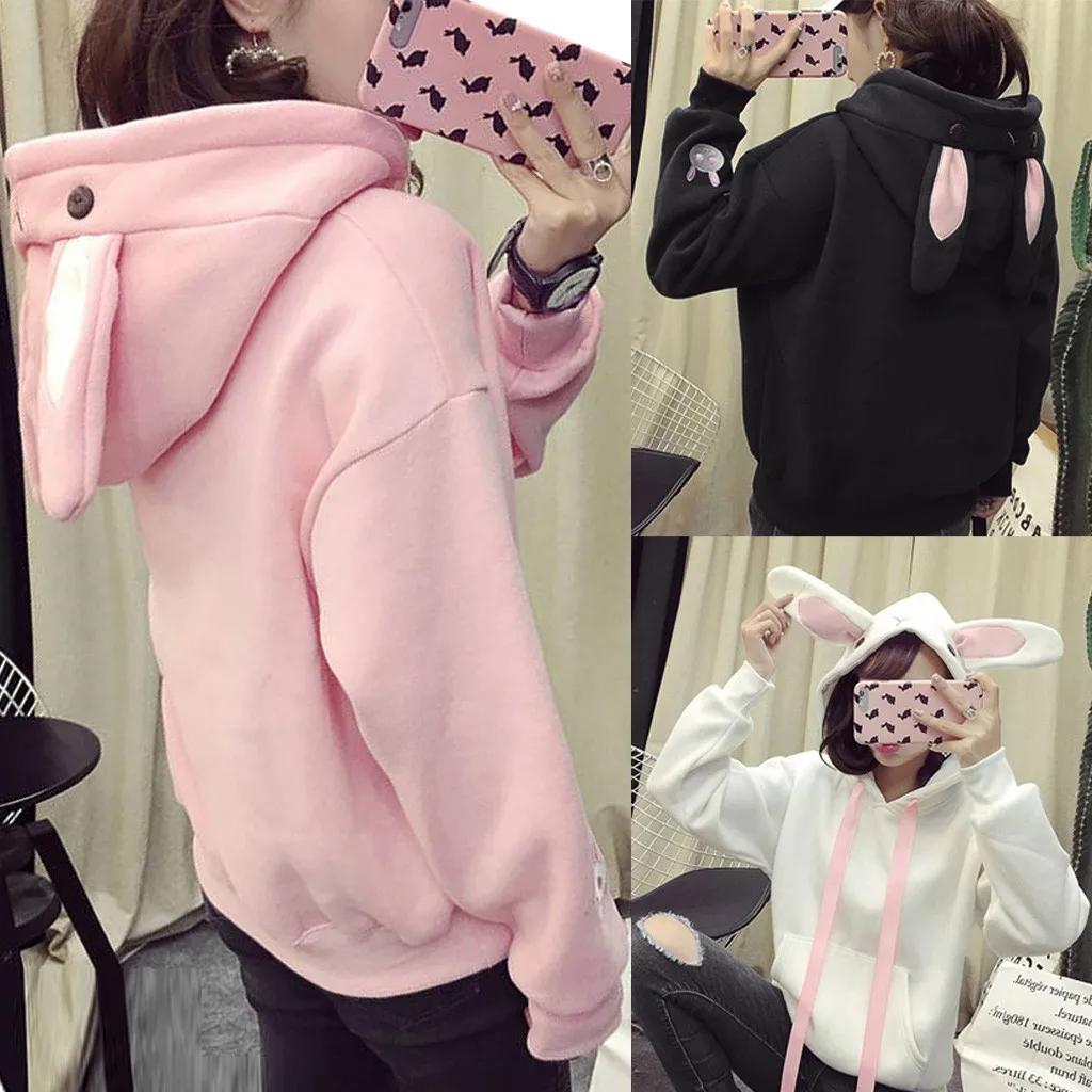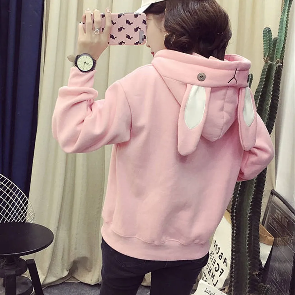 Kawaiiтолстовка с капюшоном с милыми заячьими ушками; женские толстовки в стиле Харадзюку; свободные спортивные костюмы с вышивкой; пуловеры; Moletom; большие размеры XXL