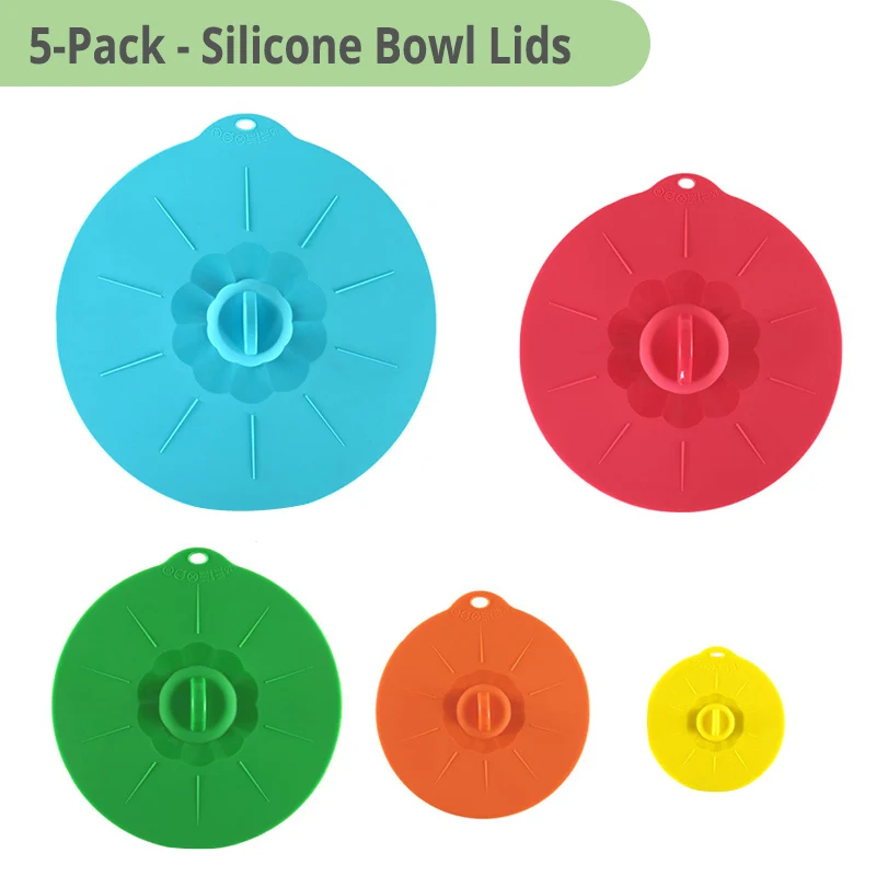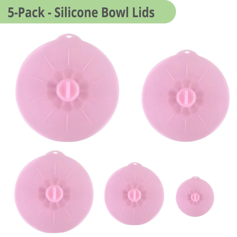 Силиконовые крышки чаши набор из 5 многоразовых герметичных крышек для мисок, горшков, чашек. Безопасен для пищевых продуктов. Соединительные ручки для удобного хранения