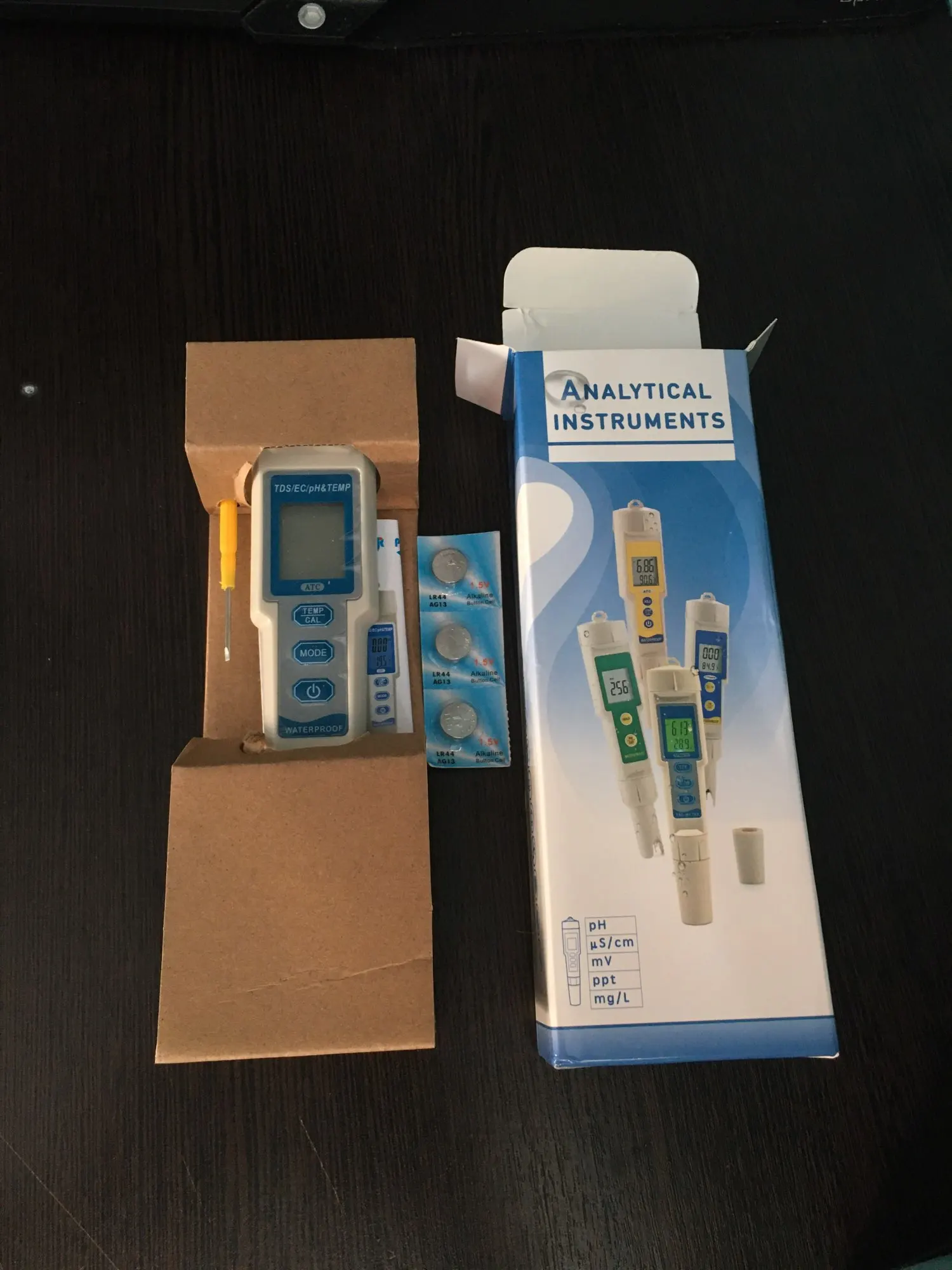 Заказывал второй раз. Первый еще работает. Взял на всякий случай, для контроля. Заказывал из России. Продавец как всегда на высоте. На третий день после заказа, курьер был уже в Москве у двери. В этот раз, привезли немного другую модель. Показывает - temp, ppm ph, ppt, us, ec. Привезли вместе с батарейками. Доволен. Рекомендую.