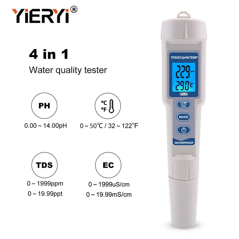 Yieryi 4 в 1 TDS PH-метр PHTDSECизмеритель температуры цифровой монитор качества воды тестер для бассейнов, питьевой воды, аквариумов