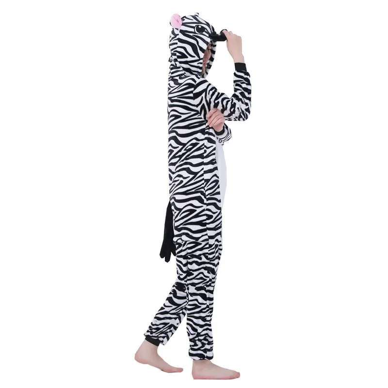 Пижама-Кигуруми для взрослых, комбинезон в виде зебры, зимний комби...