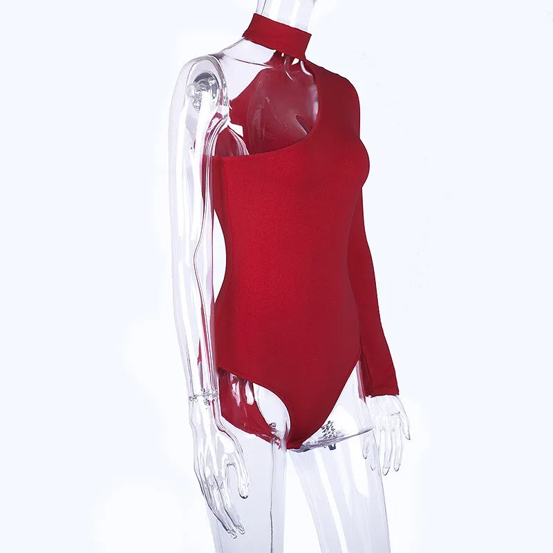 Сексуальное Женское боди из смешанного хлопка с бретельками на одно плечо, Новая мода зима весна, однотонный бодикон, повседневное боди