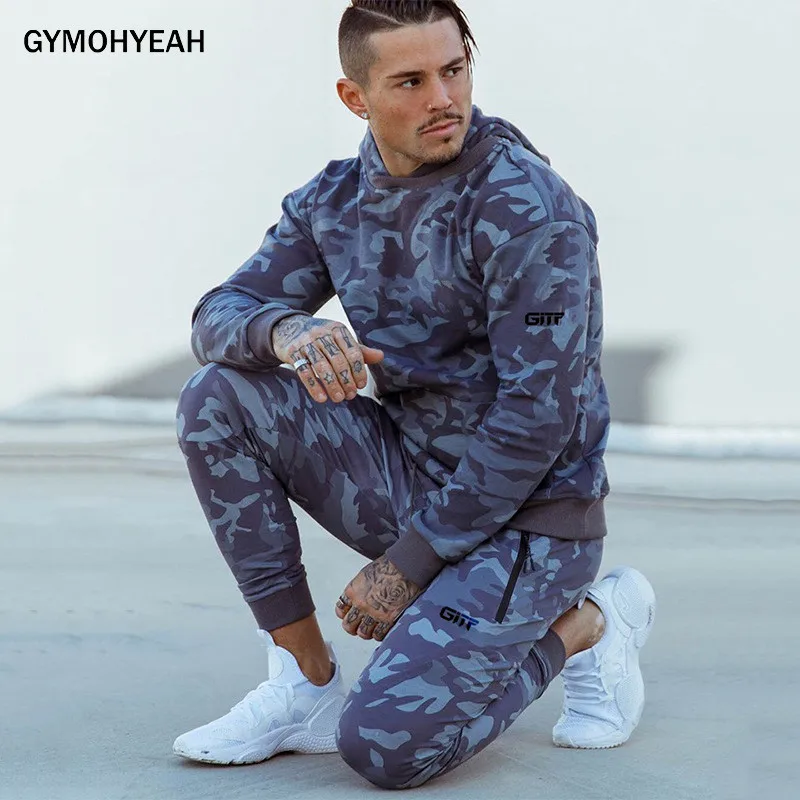 Мужские спортивные костюмы, камуфляжный спортивный костюм с капюшон...