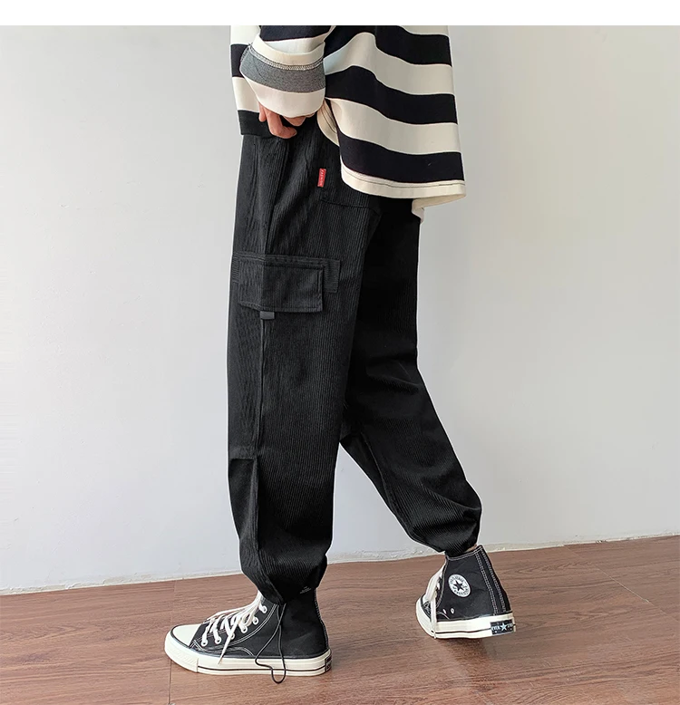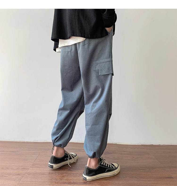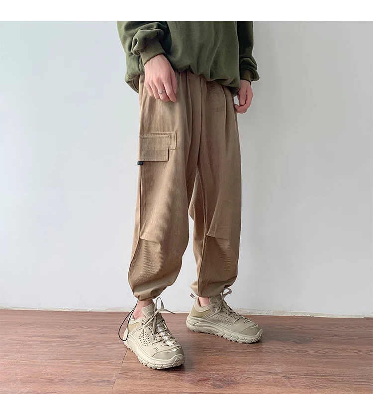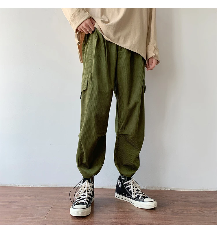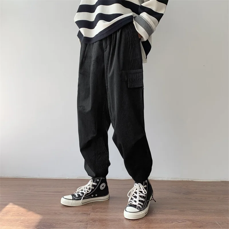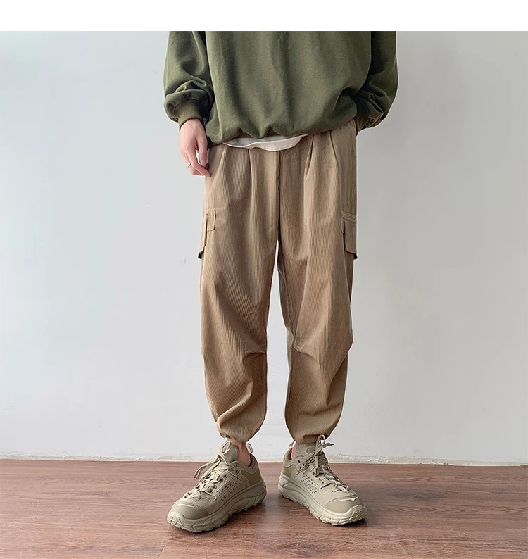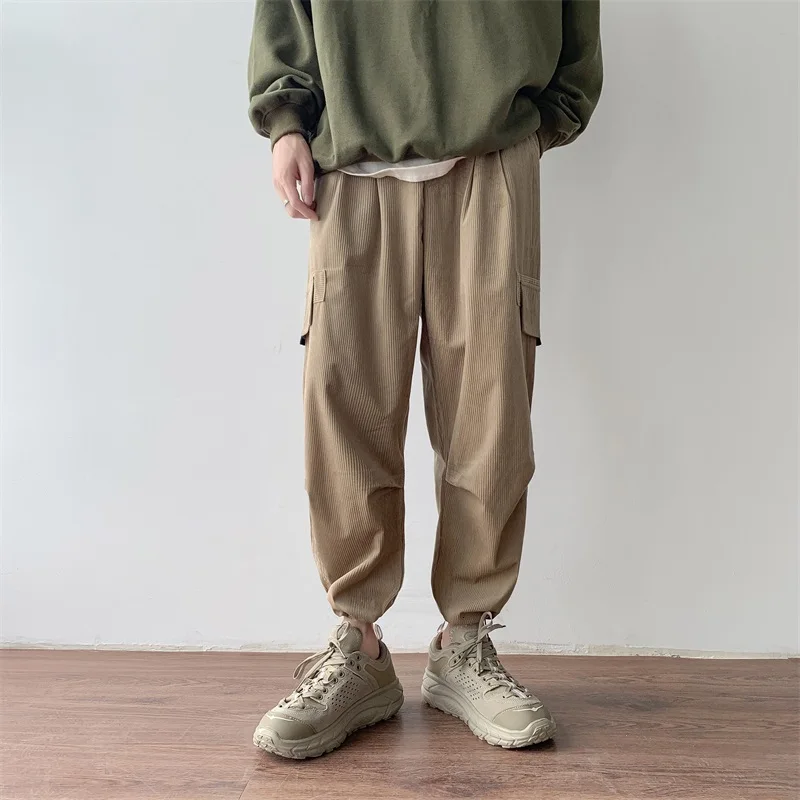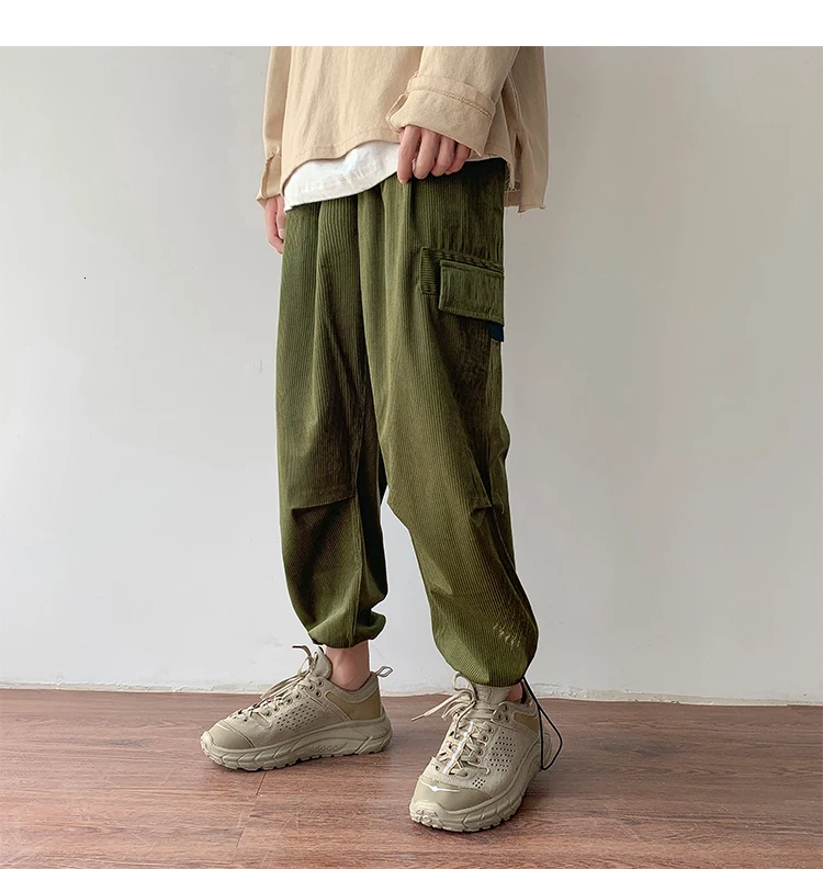 Осенние мужские утепленные брюки в стиле ретро вельвет; повседневные хлопковые брюки для отдыха; однотонные спортивные брюки в стиле хип-хоп