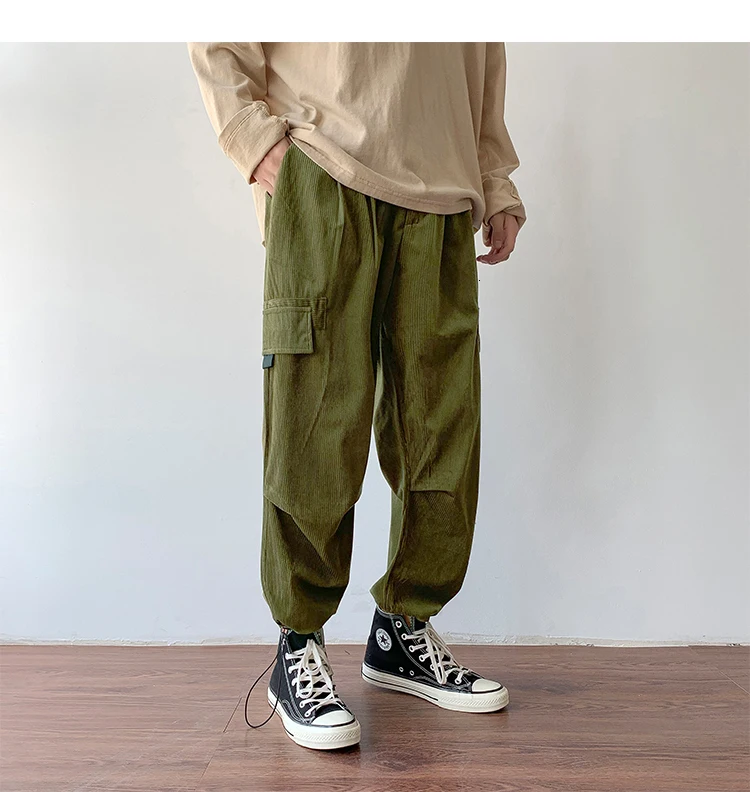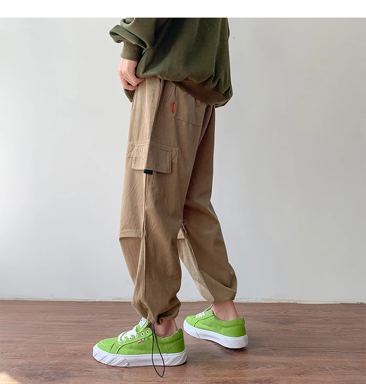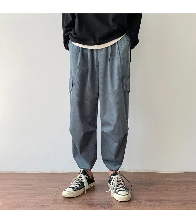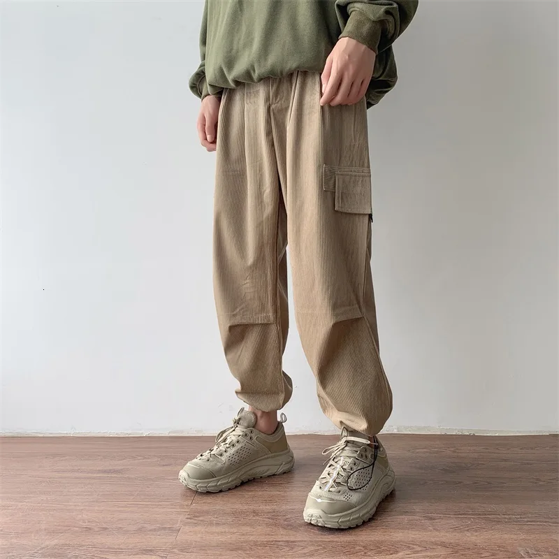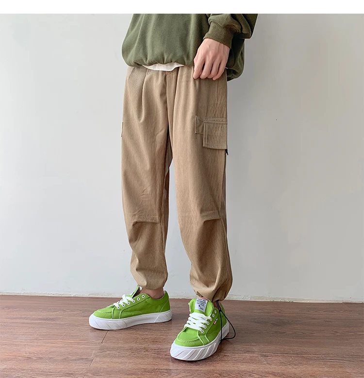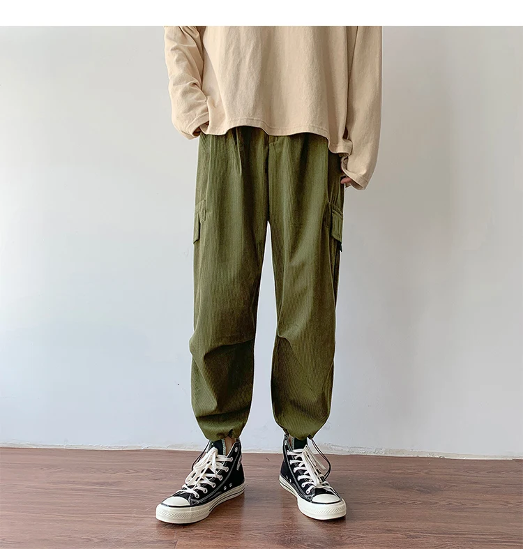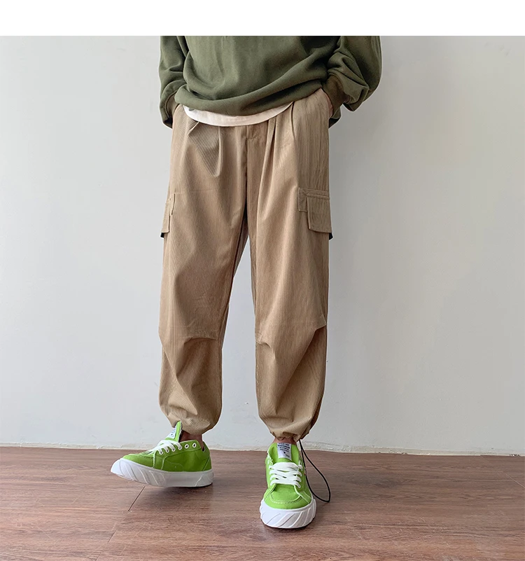 Осенние мужские утепленные брюки в стиле ретро вельвет; повседневные хлопковые брюки для отдыха; однотонные спортивные брюки в стиле хип-хоп