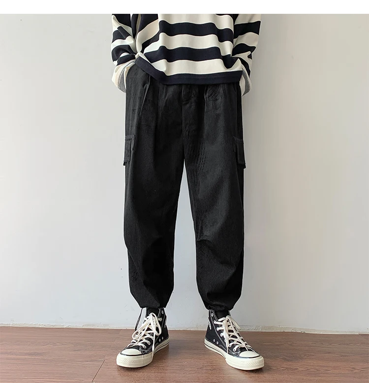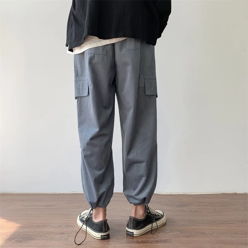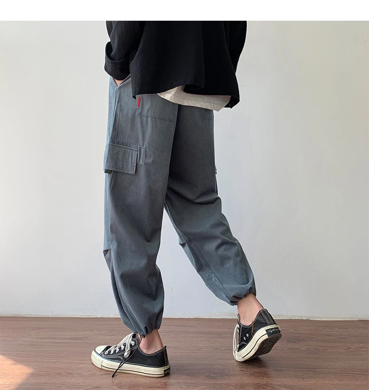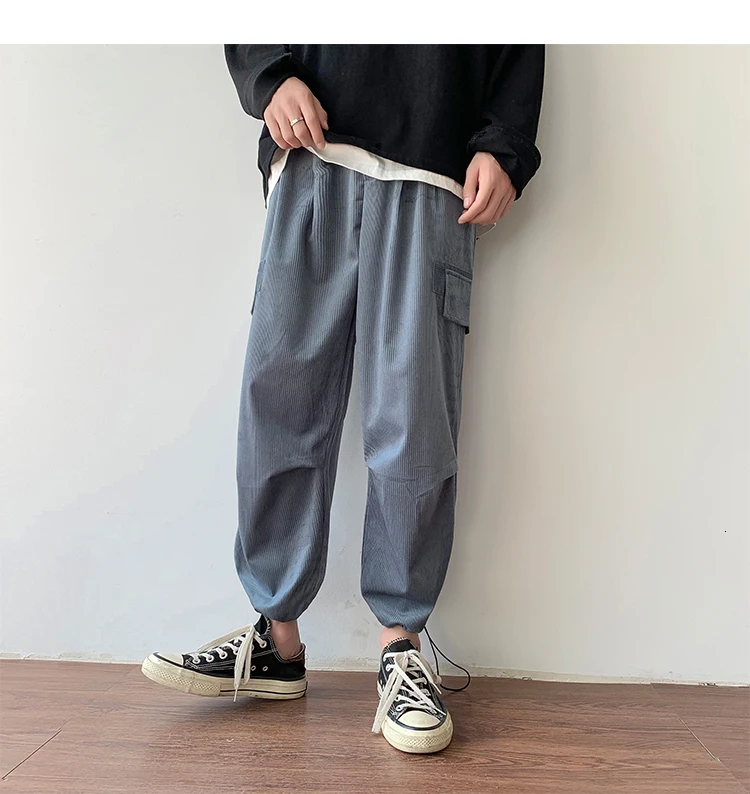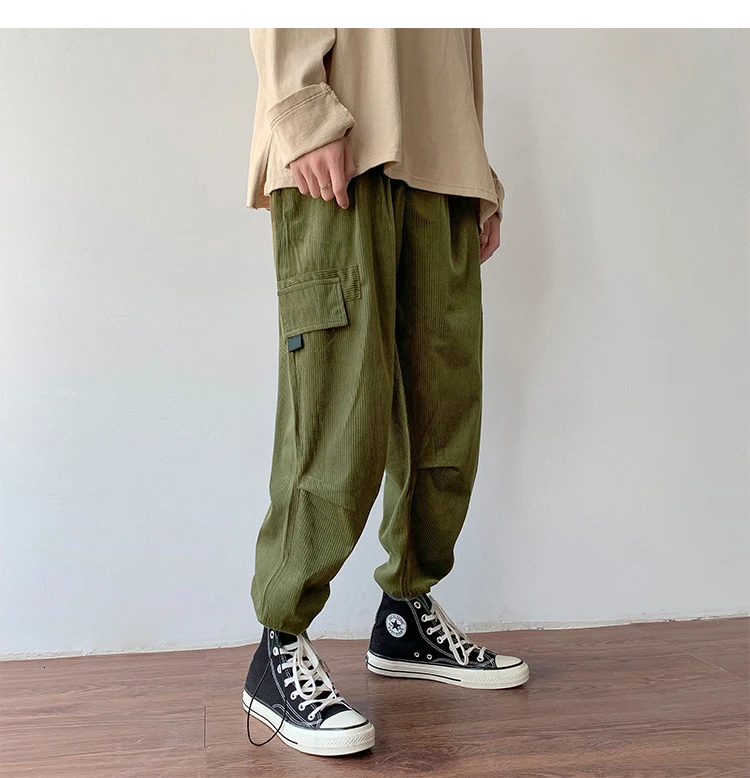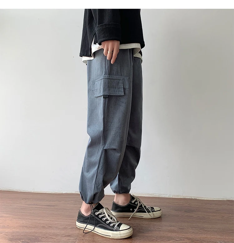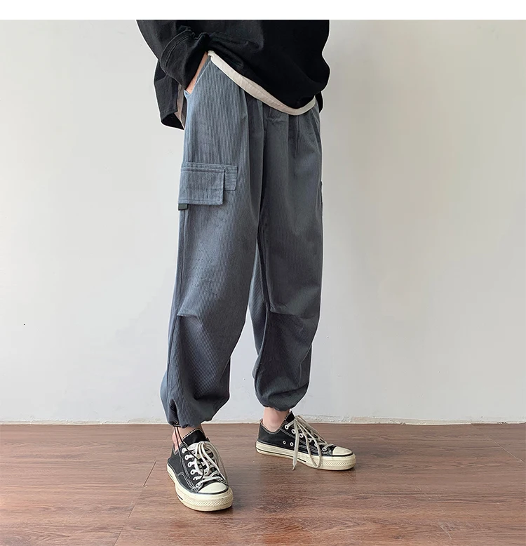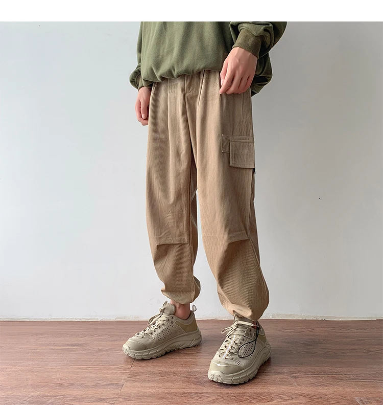 Осенние мужские утепленные брюки в стиле ретро вельвет; повседневные хлопковые брюки для отдыха; однотонные спортивные брюки в стиле хип-хоп
