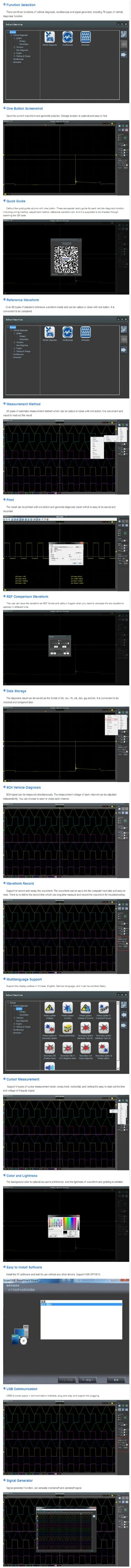 Введение:Экономичный Hantek PC USB 8CH автомобильный диагностический осциллограф/DAQ/Программируемый генератор: высокоэффективный и экономичный;8 каналов осциллографа для тестирования транспортного средства;Датчик автоматического зажигания;2.4MSA/s частота дискретизации в реальном времени, 12 бит вертикального разрешения;Функция спектрального анализа;10 мВ/див до 5 В/див Входная чувствительность;Функция карты DAQ;8 каналов программируемый генератор, который может аналоговые сигналы коленчатого вала, распределительного вала и т. Д.Особенности:(1) испытание транспортного средстваПервая Диагностика: впускной коллектор вакуум и зажигание, бензиновые пары регулирующий клапан вакуум и зажигание, холостое зажигание выхлопа, пусковое зажигание выхлопаЗажигание: первичный и вторичныйСенсор: расходомер воздуха, распределительный вал, коленчатый вал, распределитель, лямбда-датчик, положение дроссельной заслонкиДиагностика автобуса: проверка данных CAN Bus, целостность сигнала CAN bus, долгосрочное приобретение CAN bus LH, LIN busИсполнитель: бензин/дизельСхемы стартера и зарядки(2) осциллограф8 каналов осциллографа, 2.4MSA/s частота дискретизации в реальном времени12 бит вертикальное разрешение, функция спектрального анализа(3) Программируемый генератор8 каналов программируемый генераторМогут быть аналоговые сигналы коленчатого вала, распределительного вала и т. Д.(4) другиеUSB 2,0 интерфейс подключи и работай, и нет необходимости дополнительного источника питания;Более 20 типов функции автоматического тестирования, аналогичный интерфейс с настольным осциллографом, прост в использовании;