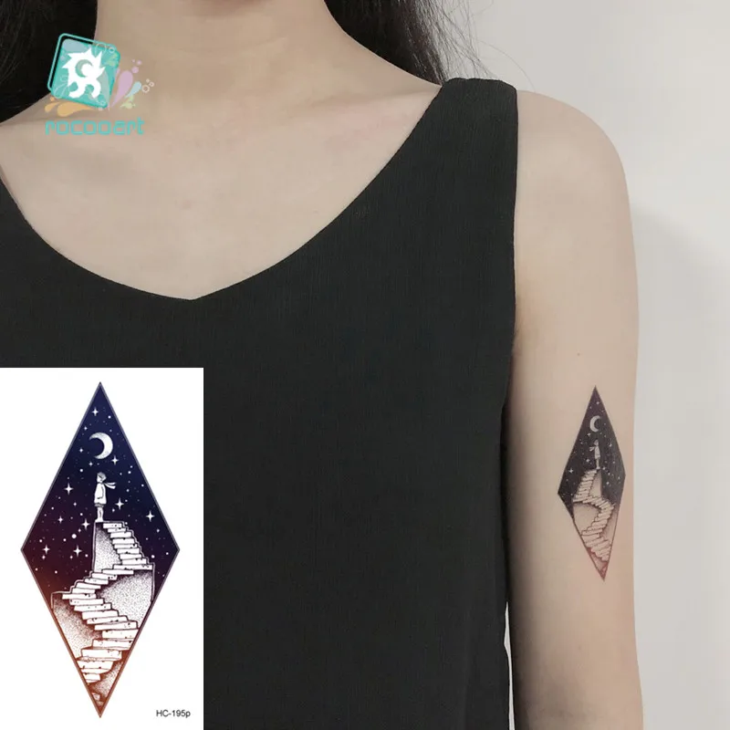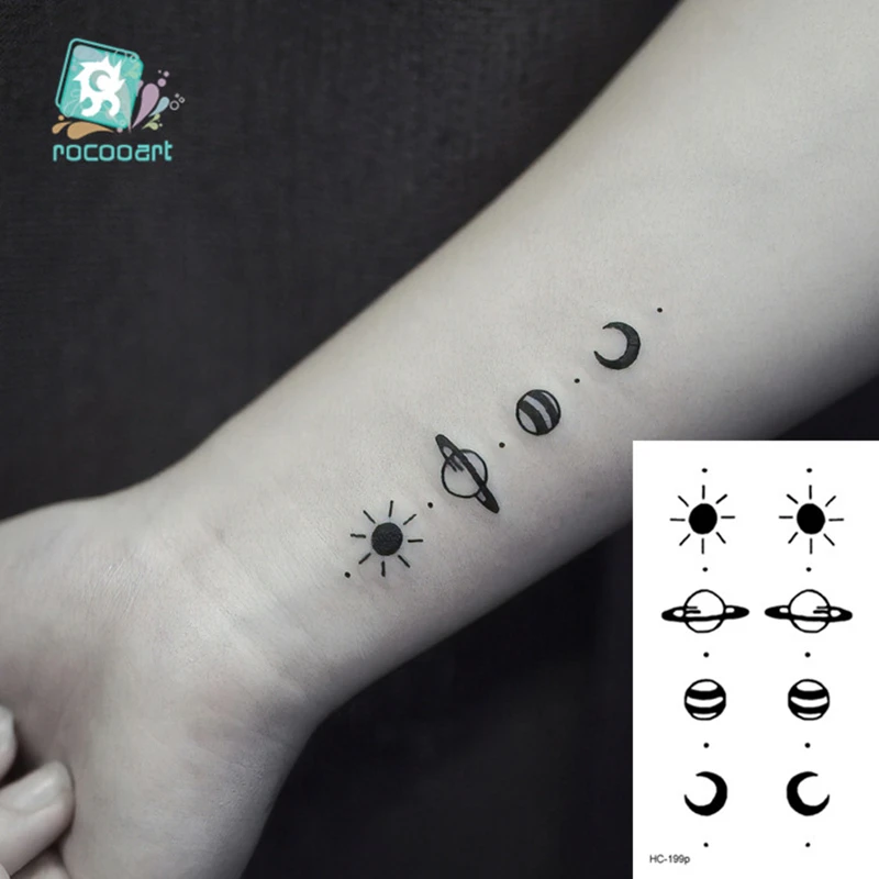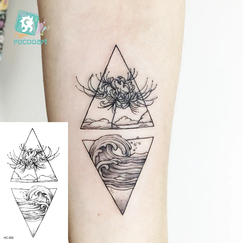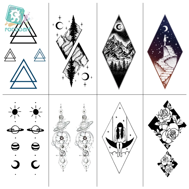 Временная татуировка Rocooart, наклейка с геометрической планетой, Медузой, татуировка черного треугольника, для тела, для рук, для мужчин, имитация водостойкой татуировки