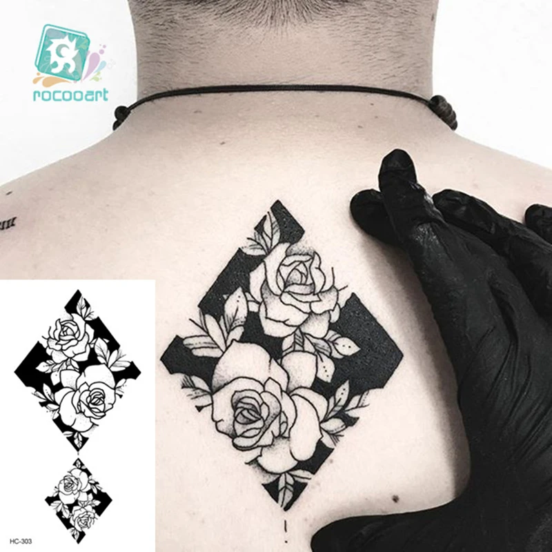 Классическое черное тату Роза, смайлик, искусственное тату, тату дл...
