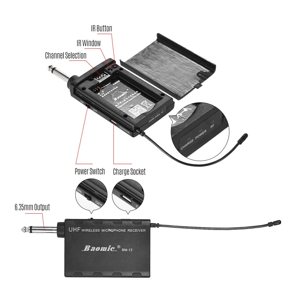 BM-12/V2 Профессиональный UHF беспроводной инструмент микрофон система приемник и передатчик 790-820 МГц 16 каналов для Sax саксофона французский рог труба