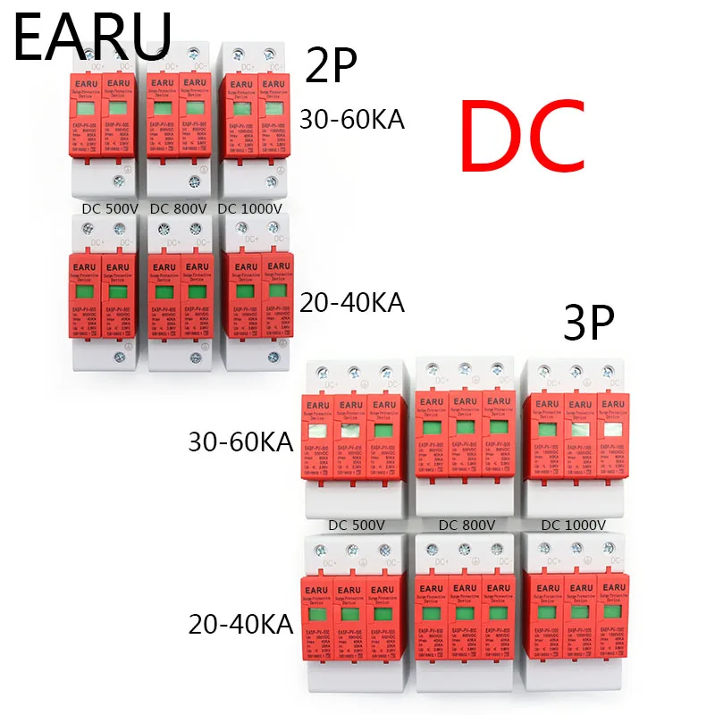 Защитное устройство для защиты дома от перенапряжения SPD, 2P 3P, 500 В, 800 в, 1000 В, 20 ка 40 кА, 30 ка 60 ка, защита от перенапряжения, низковольтное устройство для защиты от солнечных батарей