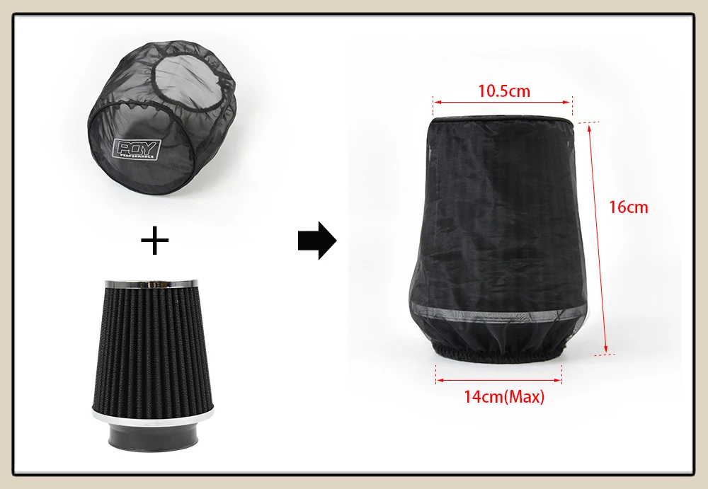 Универсальный защитный чехол для воздушного фильтра водонепроницаемый маслостойкий пыленепроницаемый фильтр для воздухозаборника с высоким потоком черный цилиндрический JR-AIB01