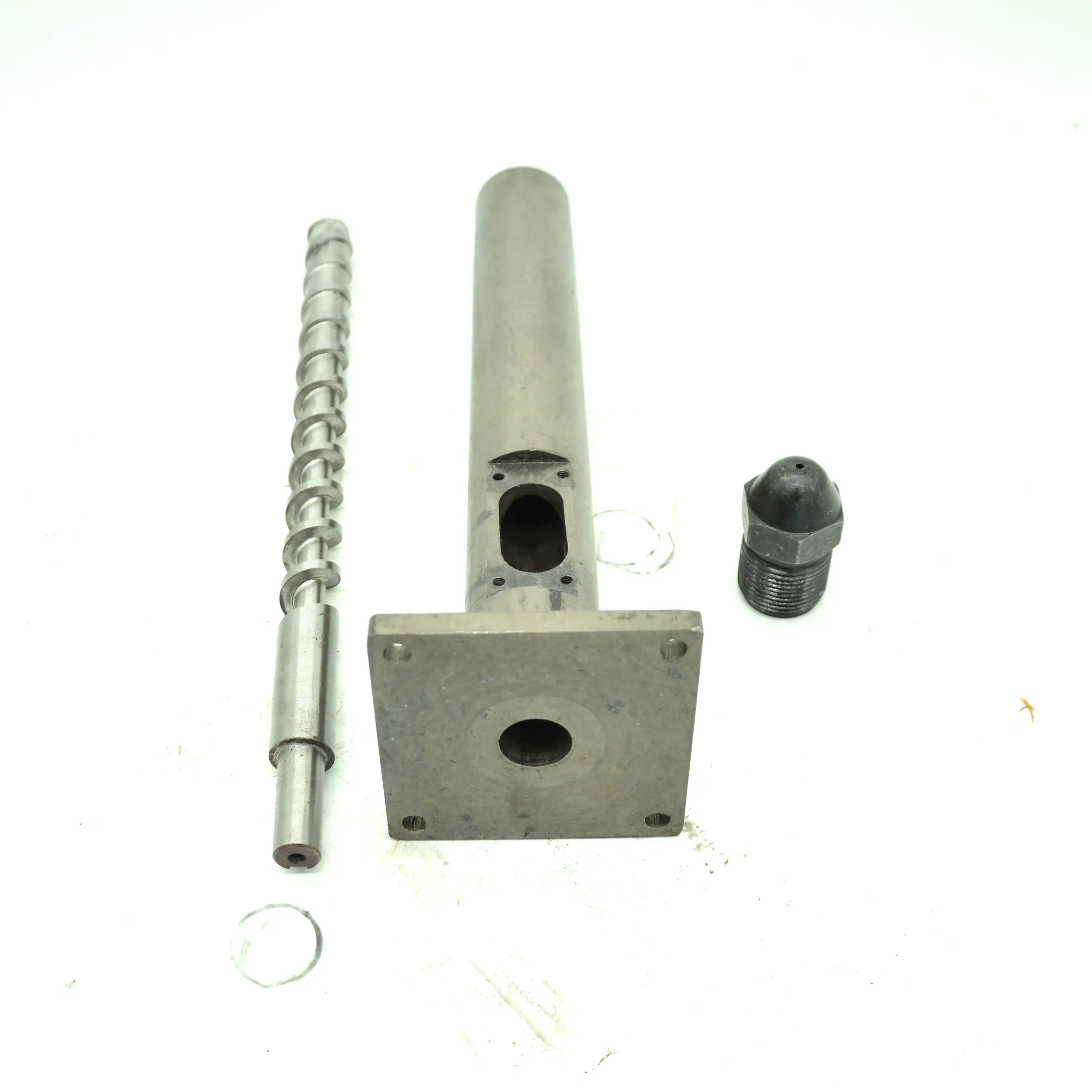 Основные базовые материалы1,38 CrMoAlA (SACM645)2.SKD-61 (специальная инструментальная сталь)3,42 CrMo (сверхвысокопрочная сталь)4.DC53 (сталь для холодной работы)5.W6Mo5Cr4V2 (высокоскоростная инструментальная сталь)Основные материалы сплава1. Сплав на основе Ni/Deloro сплав2. Карбид вольфрама/вольфрам карбид3. Сплав на основе Нико4. Сплав на основе Fe5. Сплав на основе сотрудничестваМетоды обработки1. Термообработка2. Закалка3. Биметаллический сплав для сварки винтов4. Биметаллический сплав центробежное литье для барреля5. Гальваническое покрытие из твердого хрома6. Линейность винта: 0,015 мм