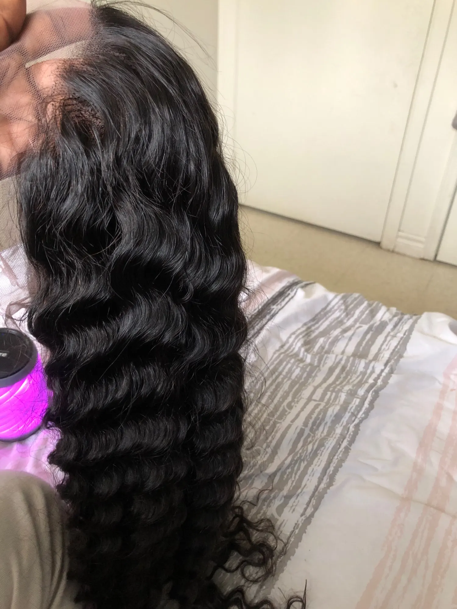 Волосы очень красивые. Во-первых, позвольте мне то же самое. Я заказал его в пятницу, и он пришел в тот же понедельник. Локоны такие великолепные! У него был запах, и он немного потускнел, когда я пробежал пальцами по нему. Но я Постирал его, и запах выпал. У меня есть фотографии, когда я вынул его из упаковки и после того, как я Постирал его. Это соответствует длине и полностью. Это мой парик, который я ношу на свадьбе. Я так взволнован. Я обновлю его, когда надену некоторое время. Я сшила ленту, чтобы сделать ее бесклеевой. Другое дело в том, что зажим внутри был не полностью пришит, поэтому мне придется пришивать его обратно. И это выглядело так, как будто они были пятнами, но когда-то молись, он выглядел полным.