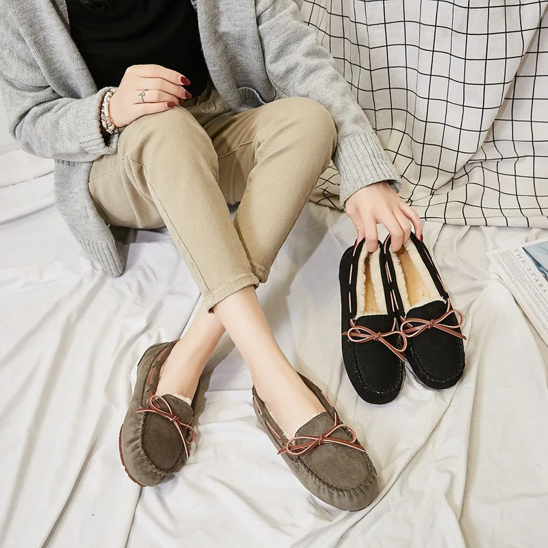 Мокасины, 2022 г., теплые женские эспадрильи на плоской подошве, лоферы без шнуровки, женские мокасины на плоской подошве, с бантом-бабочкой