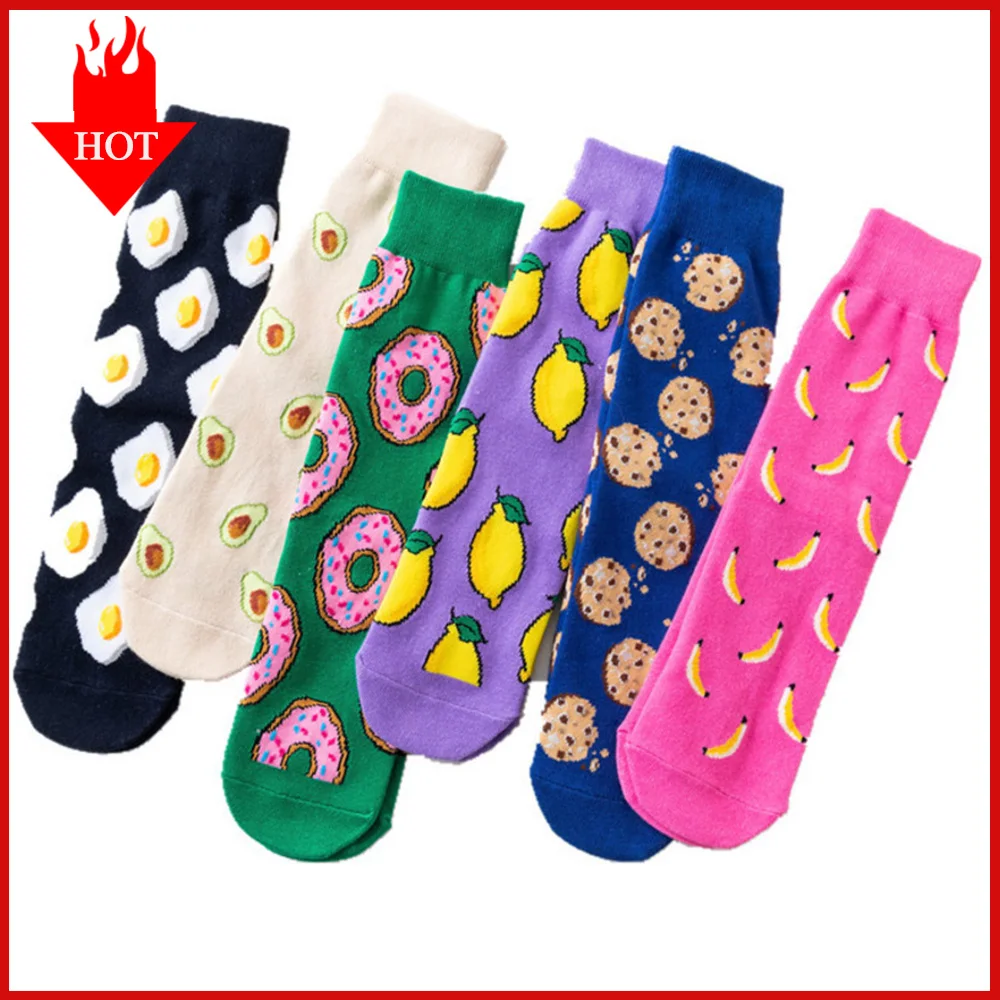 VDOGRIR 1 пара зимние женские забавные носки милые Мультяшные Фрукты Банан авокадо лимон яйцо печенье японские Харадзюку носки для скейтборда