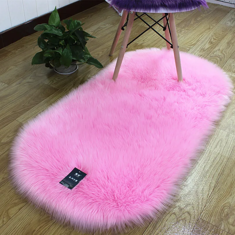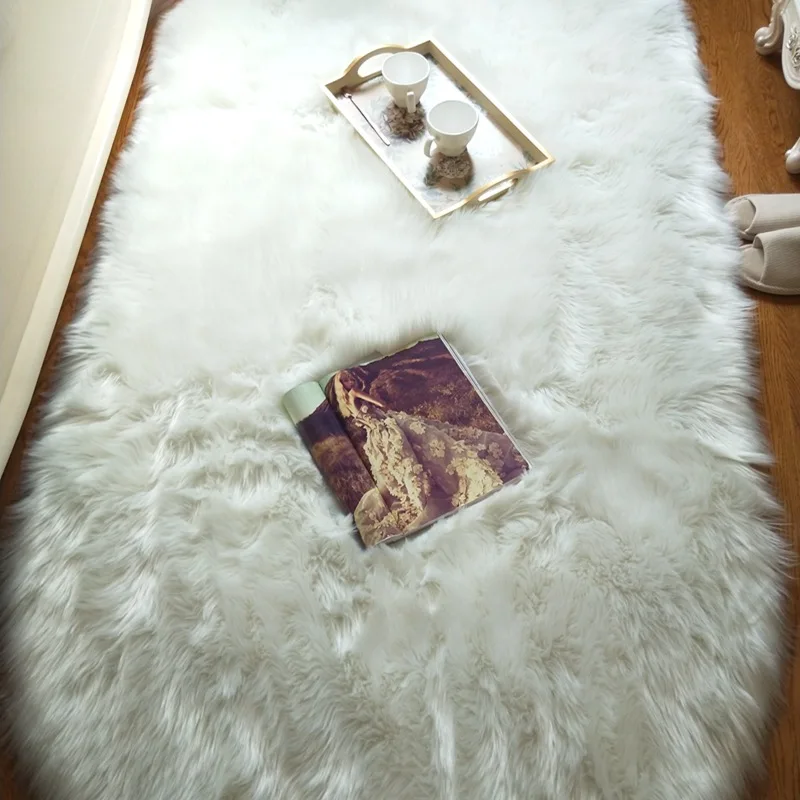 Овальные мягкие пушистые коврики из искусственного меха овчины, белые прикроватные коврики из искусственного меха в скандинавском стиле, ковер для гостиной, спальни, пола