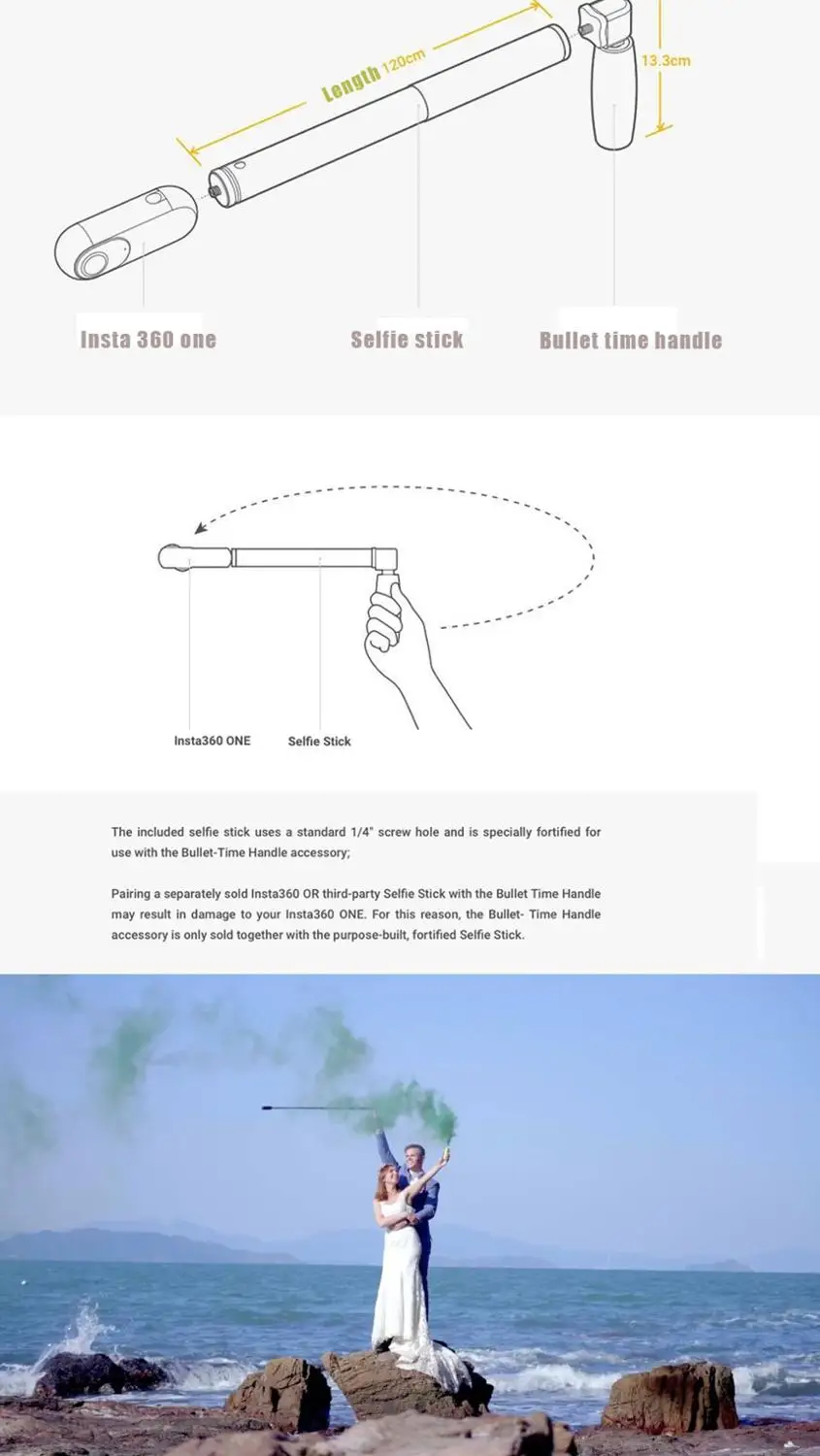 Монопод для селфи Insta360 с резьбой 14 дюйма и ручкой с вращением ...
