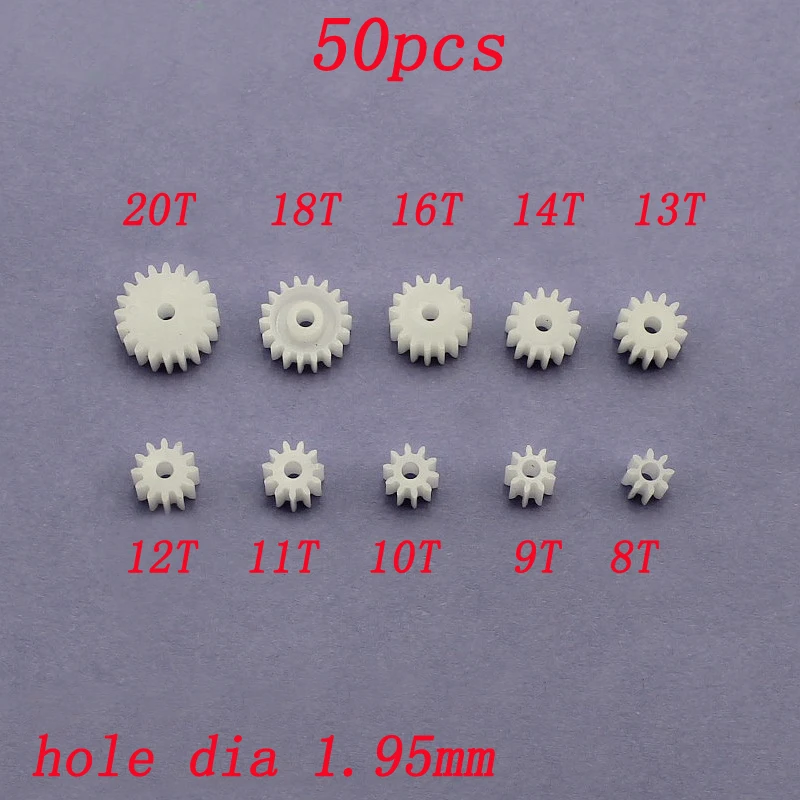 50 шт. 8T 9T 10T 11T 12T 13T 14T 16T 18T Главный модуль оси шестерни 0,5 отверстие диаметром 1,95 мм пластиковые мини-шестерни s-образный вал Соединительный адаптер