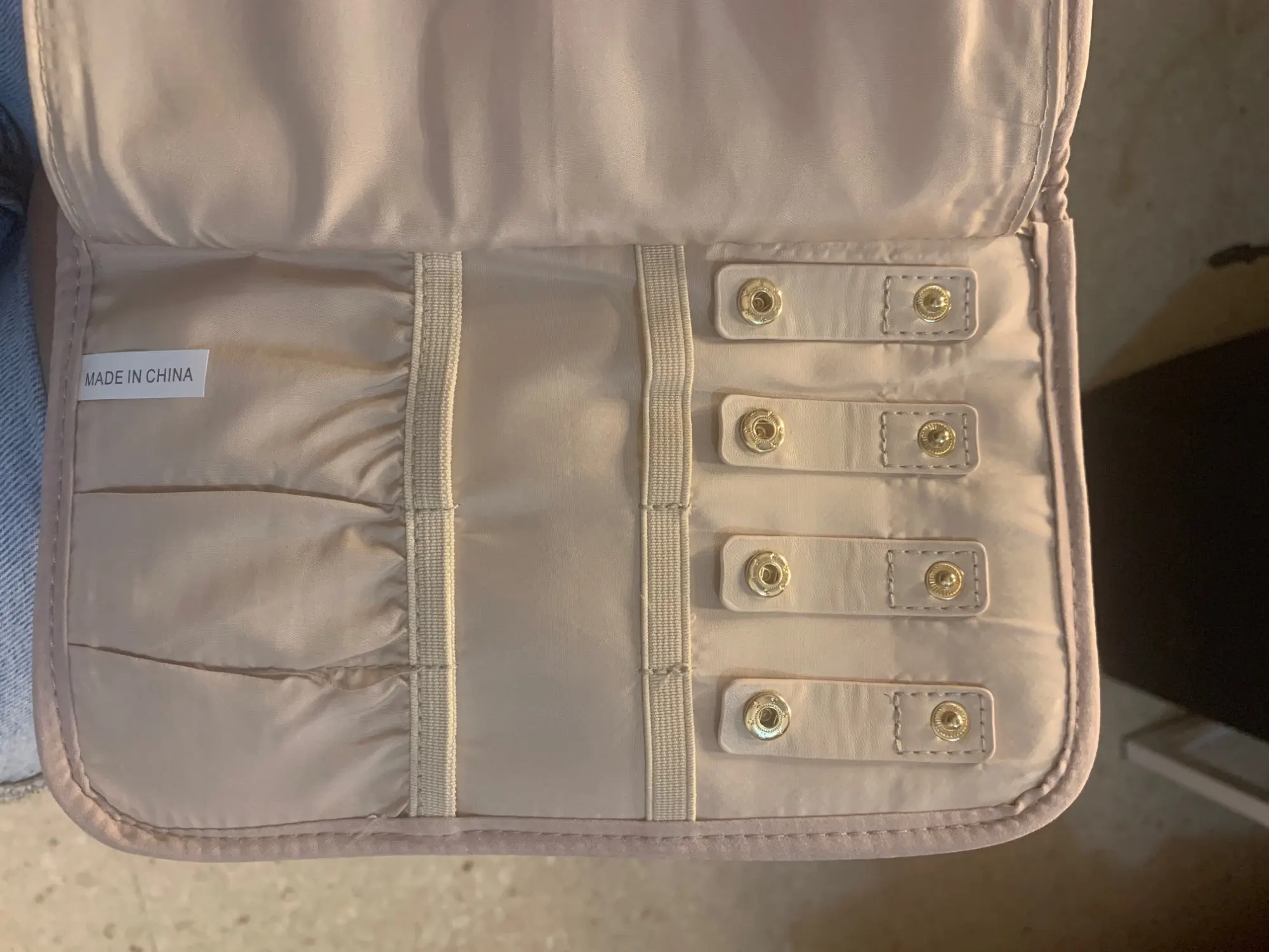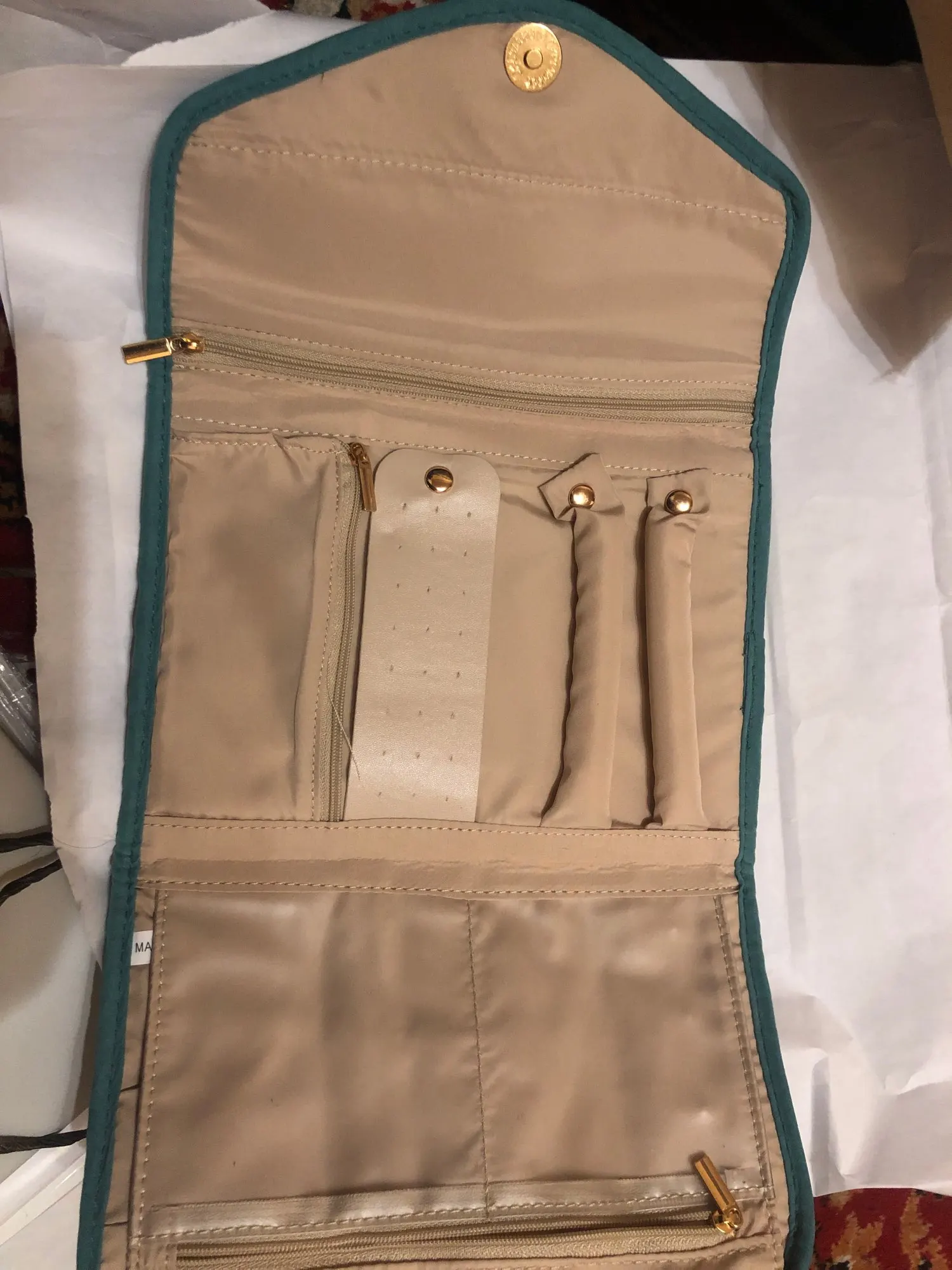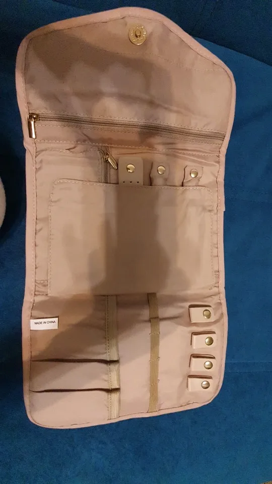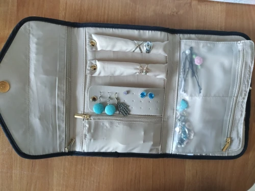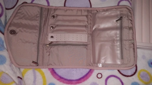 I bought this organizer to keep my jewelry in order. It has got a lot of compartmens for rings, bracelets, necklaces and earrings. The material is very pleasant to the touch, sitches are on the average and pockets are good in particular the plastic ones which you can see trough. It is a good product especially for who travels a lot like me so you do not need to carry big bulky bags anymore.