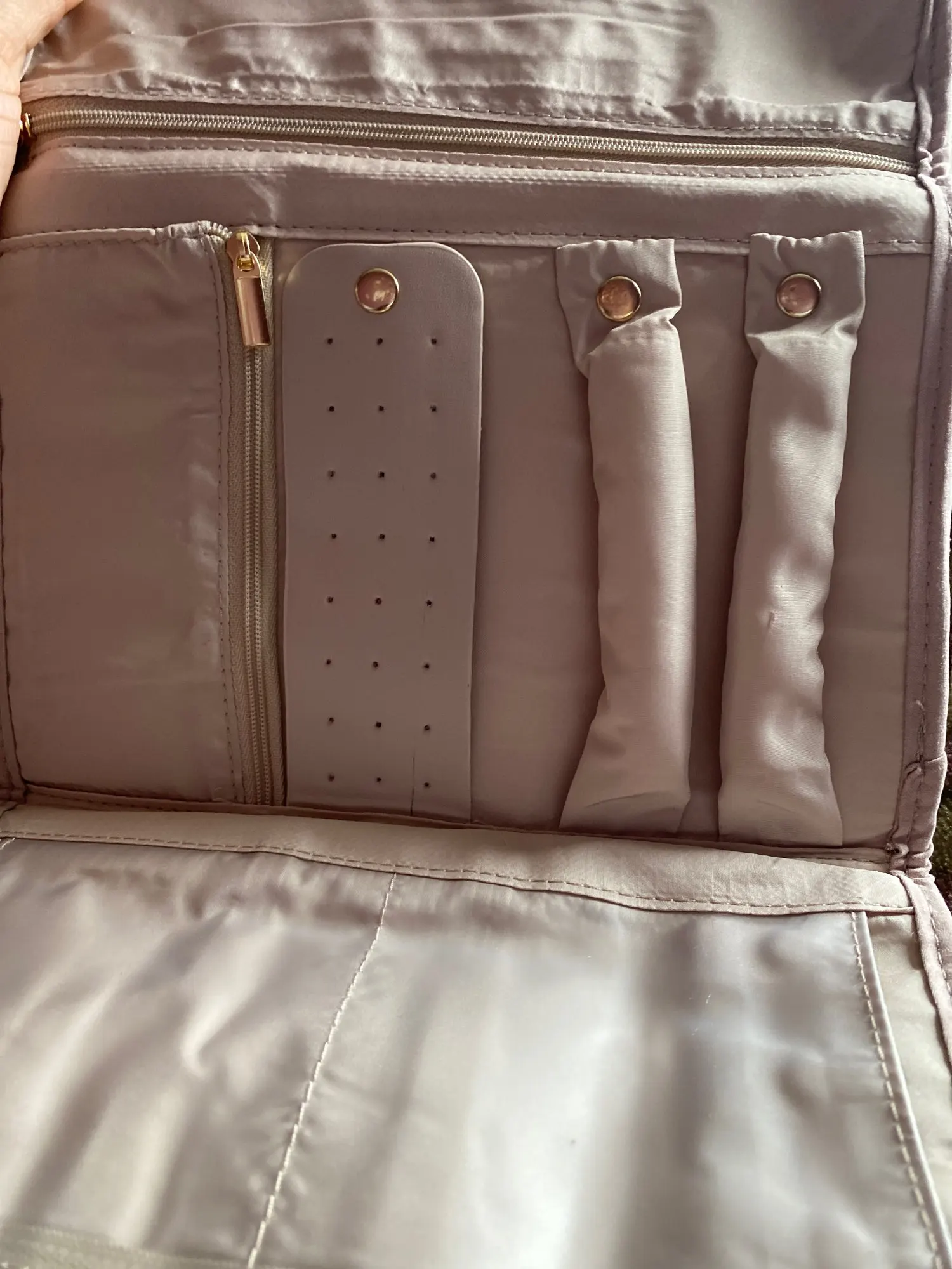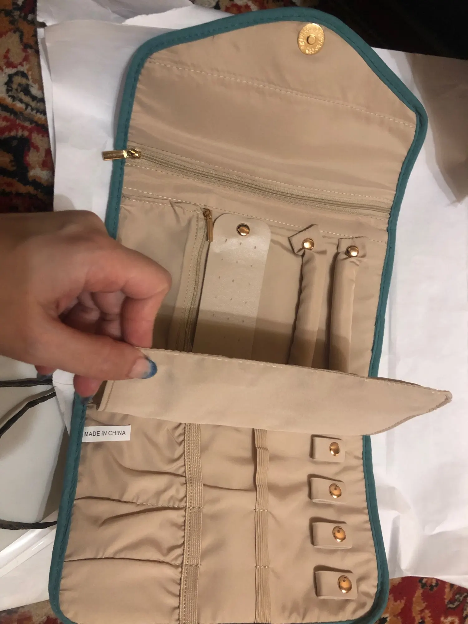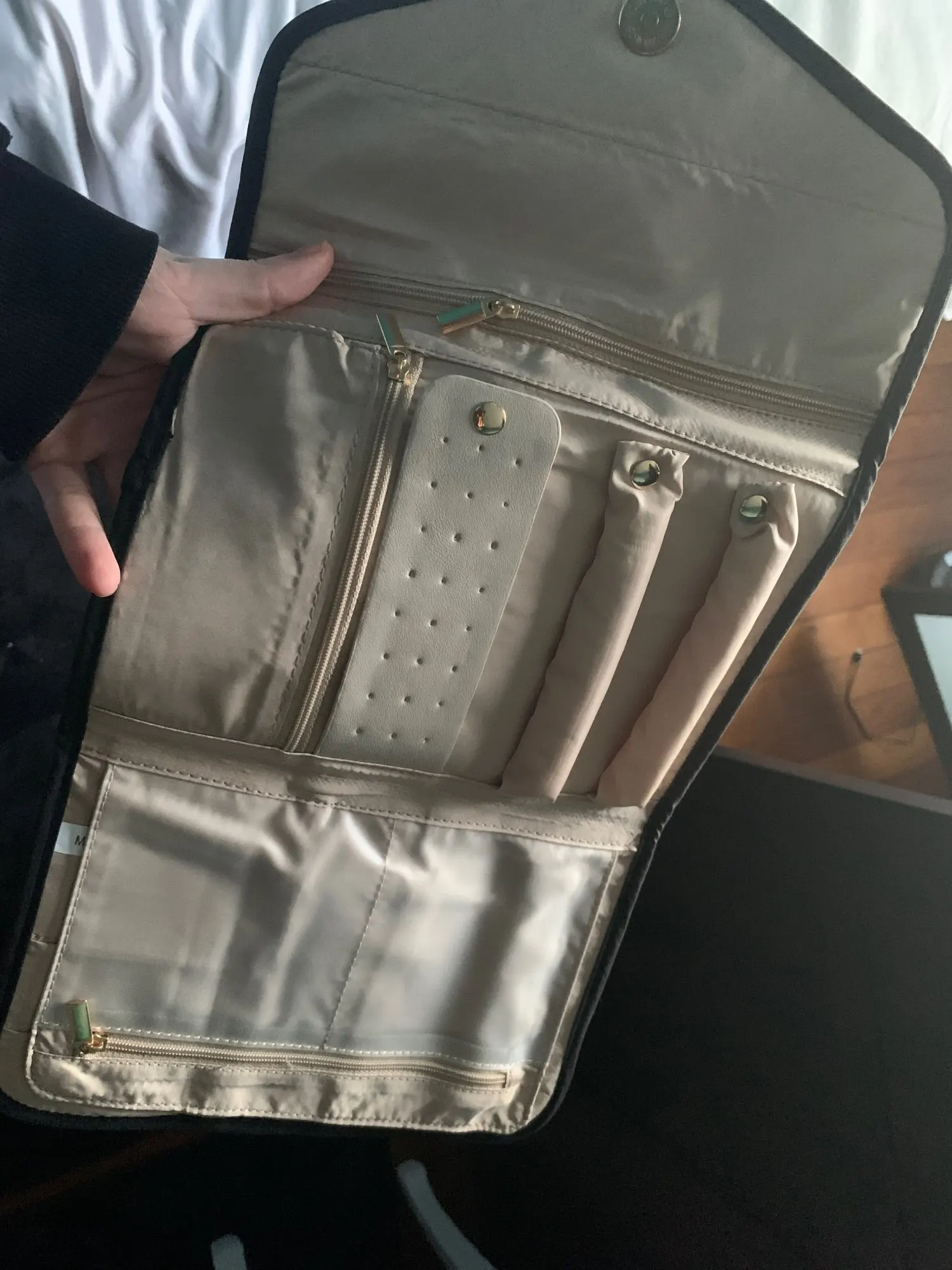 I bought this organizer to keep my jewelry in order. It has got a lot of compartmens for rings, bracelets, necklaces and earrings. The material is very pleasant to the touch, sitches are on the average and pockets are good in particular the plastic ones which you can see trough. It is a good product especially for who travels a lot like me so you do not need to carry big bulky bags anymore.