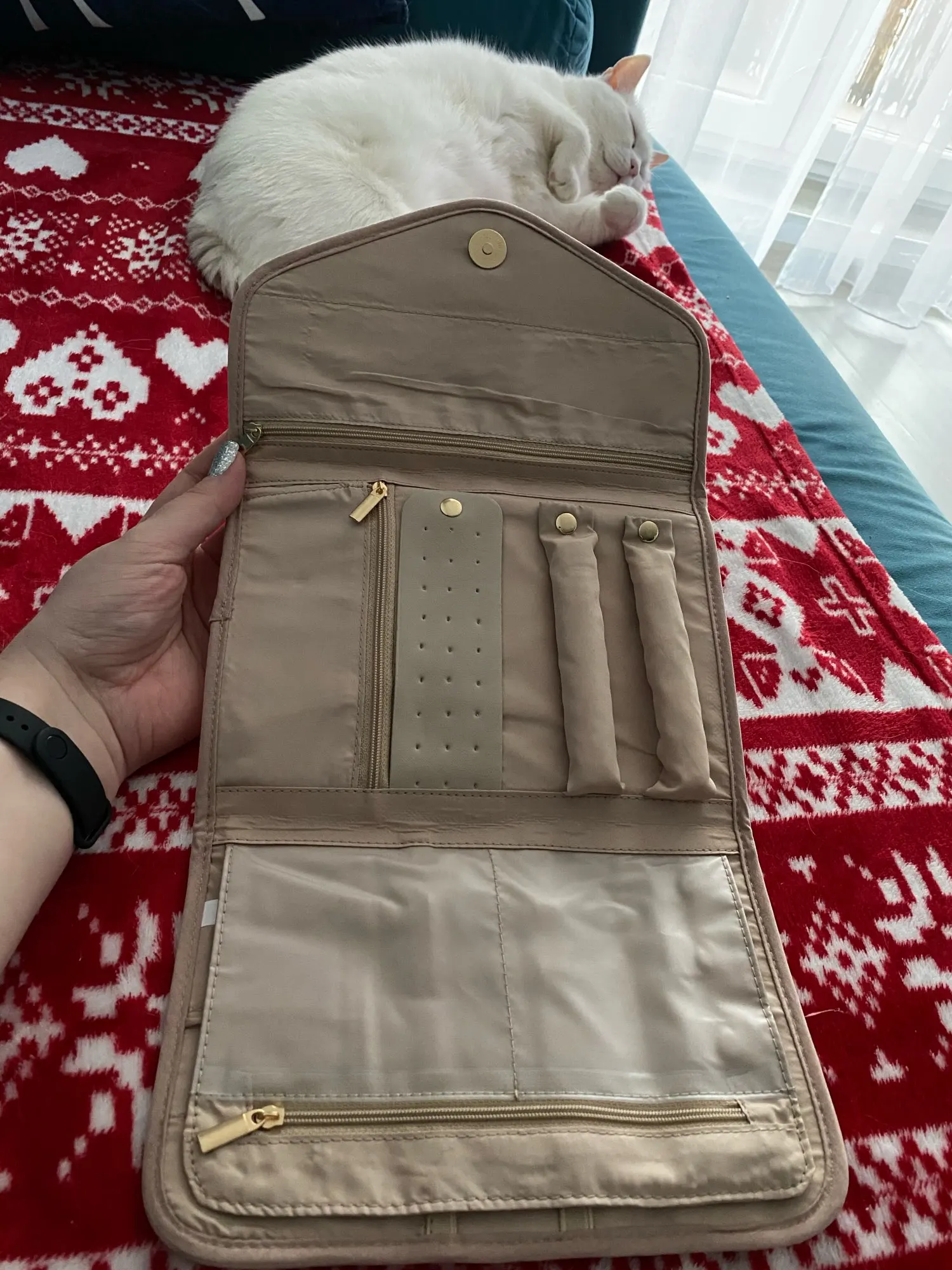 Очень вместительная, но больше чем ожидала, на подарок не стала бы дарить, потому что тряпичная, выглядит не очень, но очень практичная, для себя брала, очень довольна, уезжаю надолго в путешествия, чтобы не таскать бокс с украшениями, буду брать эту компактную штучку! Качество хорошее. Жо ростова дошла за пару недель, что тоже очень приятно