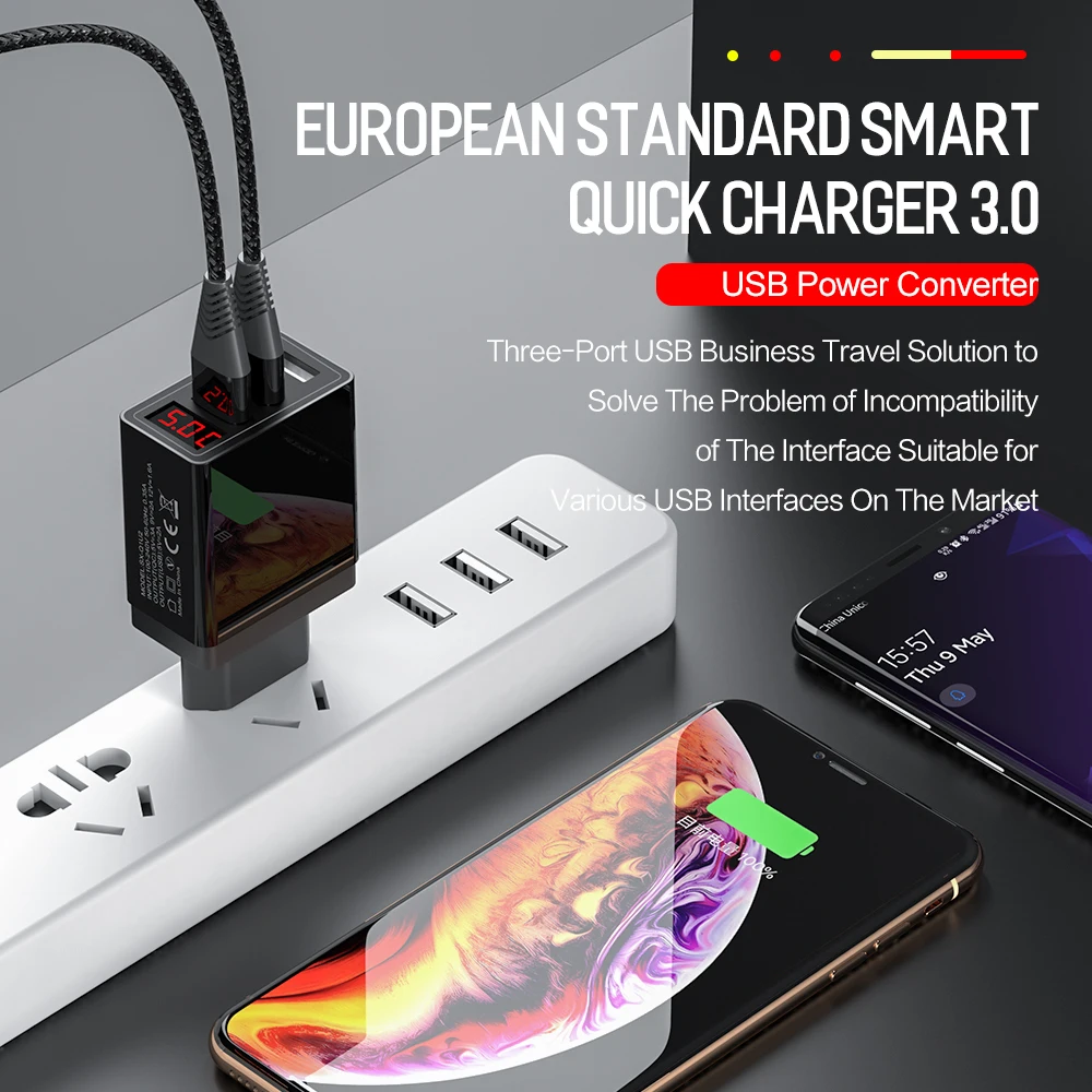 Настенное зарядное устройство QC 3,0 3A 3 USB, светодиодный дисплей, быстрая зарядка для iPhone Xiaomi Huawei P30 Pro Samsung