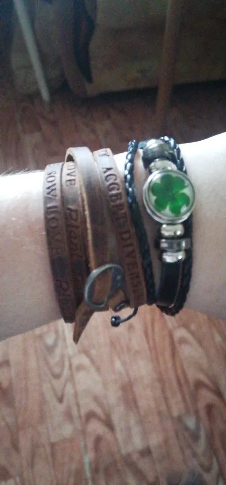 Браслет женскиймужской из черной кожи с изображением травы на удачу