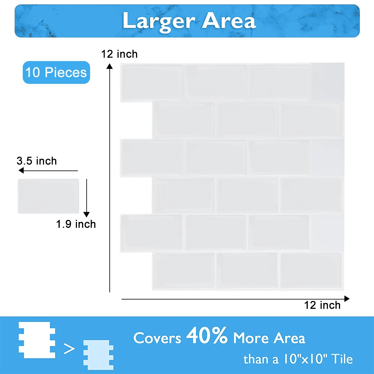 Яркие плитки 12*12 дюймов, самоклеящиеся виниловые обои, кухонные наклейки, плитка с 3d-эффектом метро, 10 листов