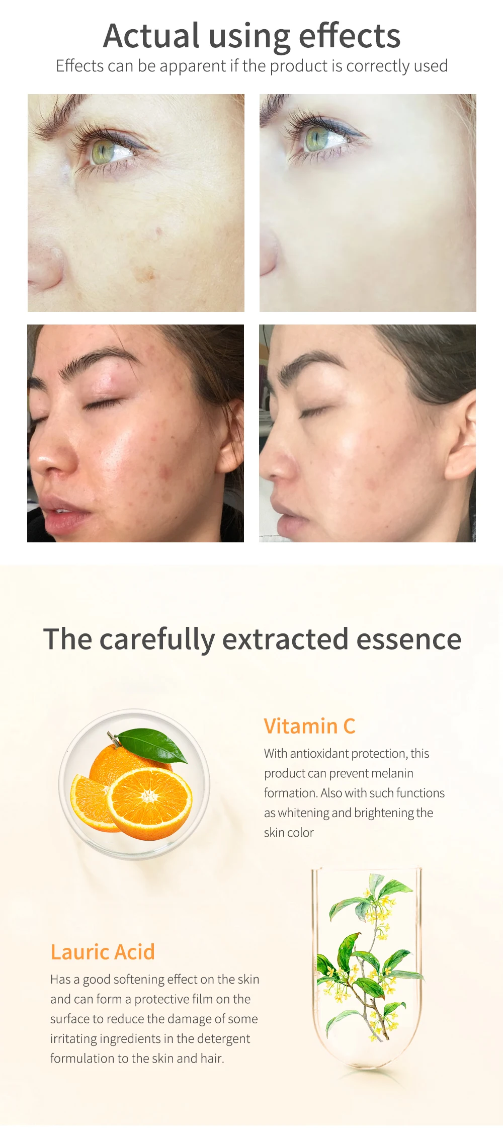Эффекты: Эта пена для очищения лица тонкая и плотная, содержит витамин С и Шелковый коллаген, который может глубоко очистить и увлажнить кожу, уменьшить и разложить меланин, улучшить тонус кожи, осветляет цвет лица изнутри и снаружи, делает кожу освежающей, удобной и эластичной.