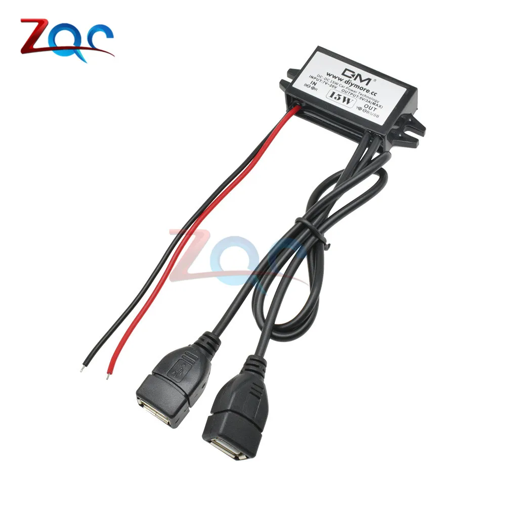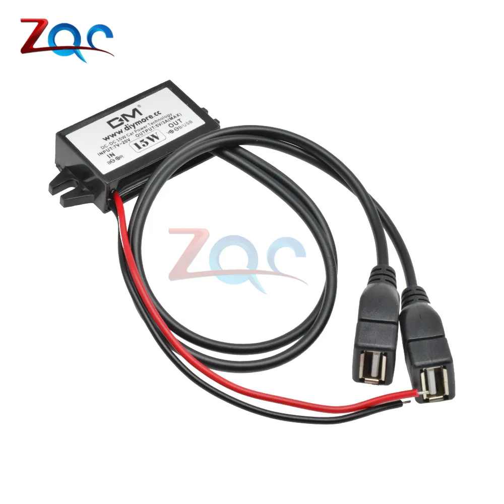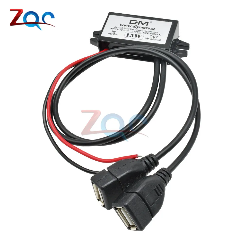 Двойной USB-выход DC-DC, преобразователь, регулятор 15 Вт, 12 В до 5 В, 3 А, максимальный понижающий адаптер питания, низкий нагрев, защита автомобиля