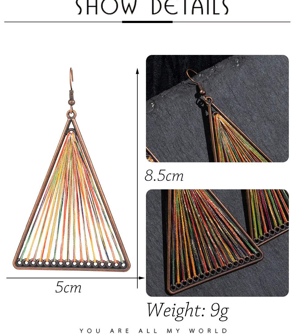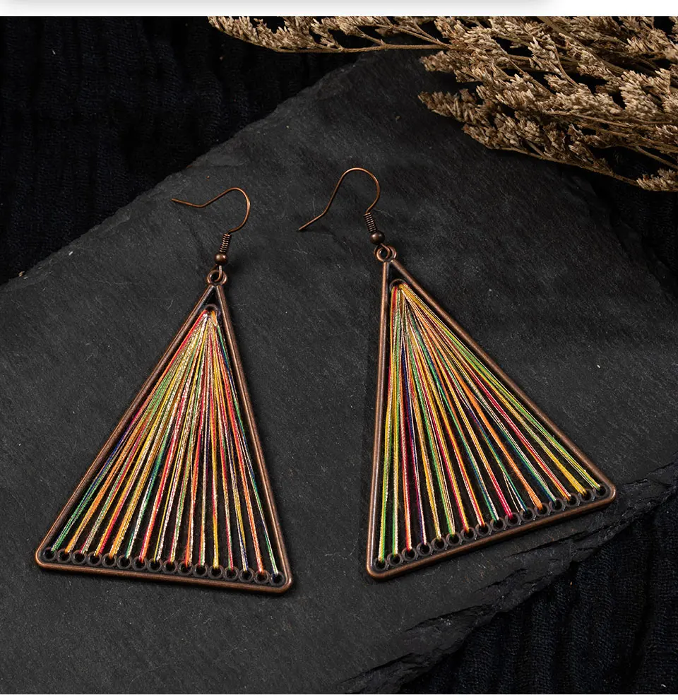 Элегантные ретро винтажные этнические разноцветные треугольные серьги-Крючки с ниткой Подвески Серьги-подвески для женщин и девочек аксессуары в подарок