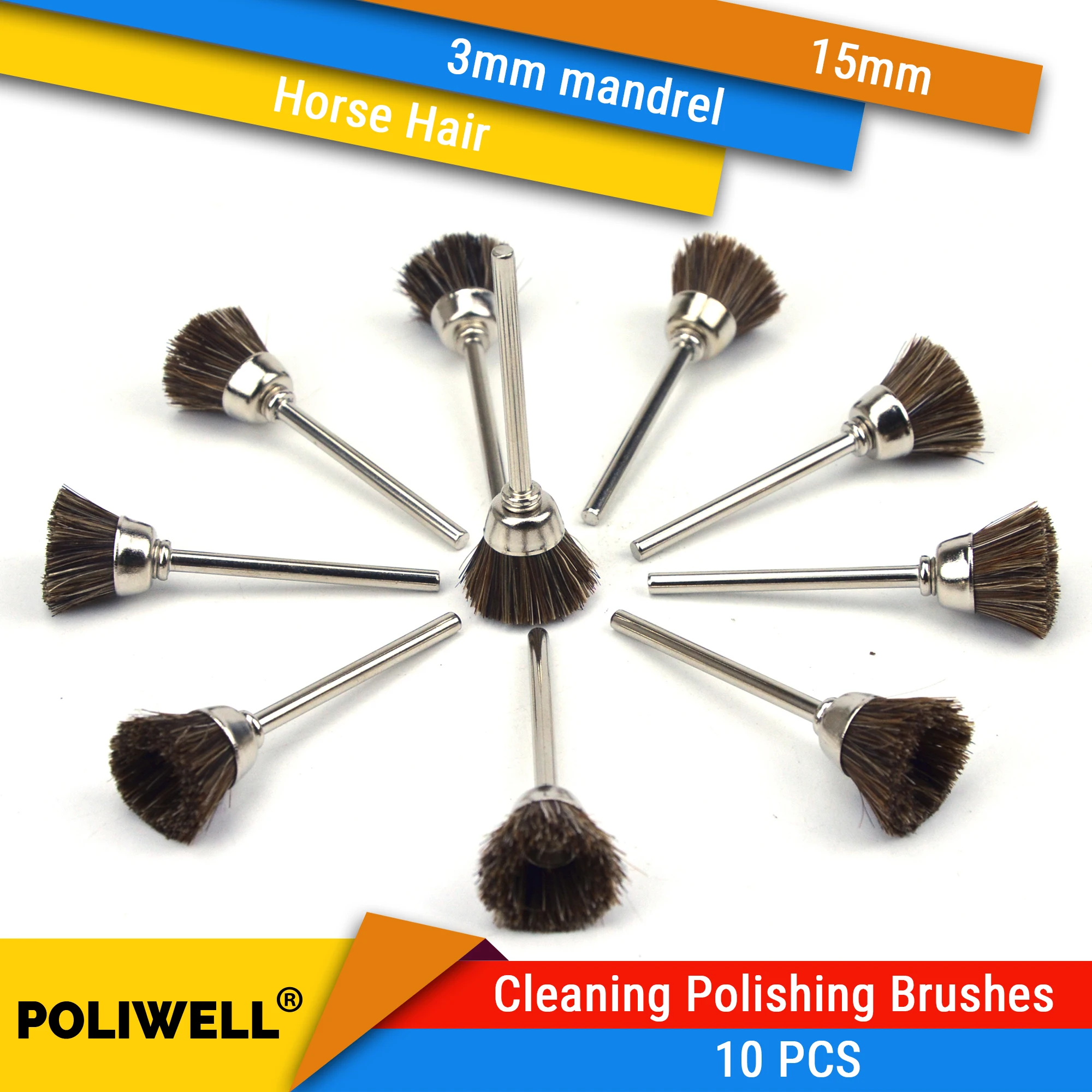 10 шт. щетки для конского волоса с 3-миллиметровой оправкой, вращающаяся щетка для полировки, чистящая щетка для мини-дрели, круглая щетка, аксессуары для электроинструмента