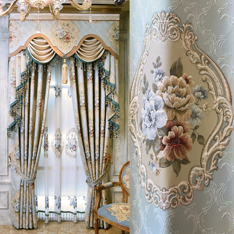 Европейские двойные жаккардовые занавески для гостиной, плотные зат...