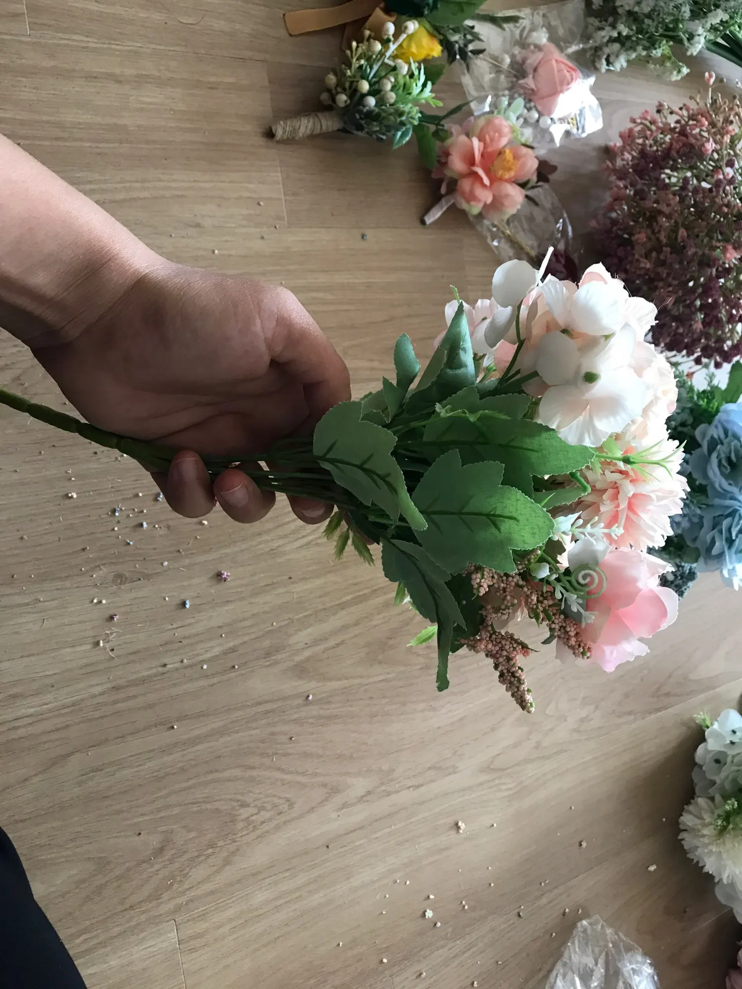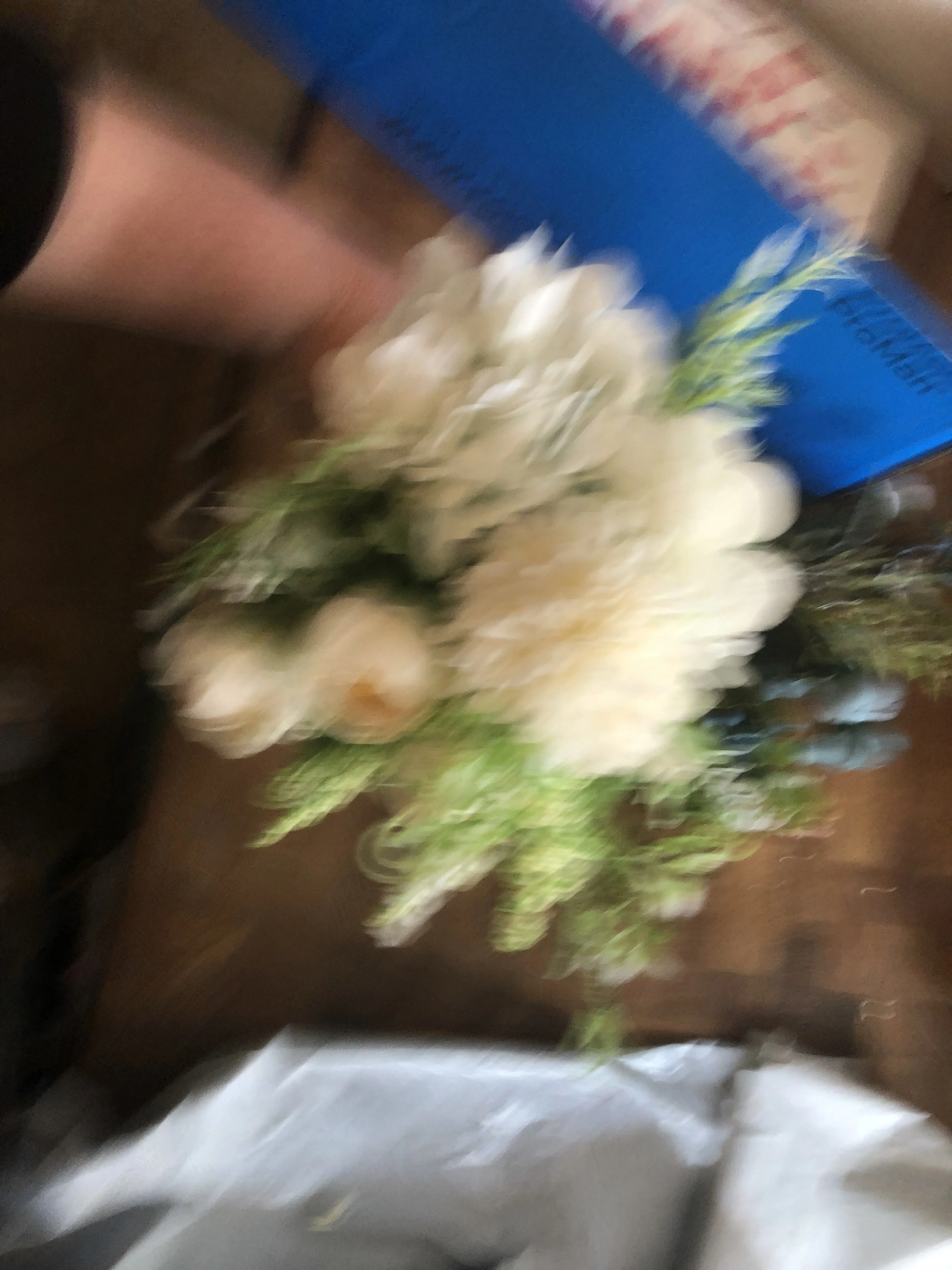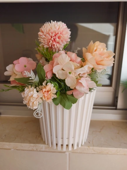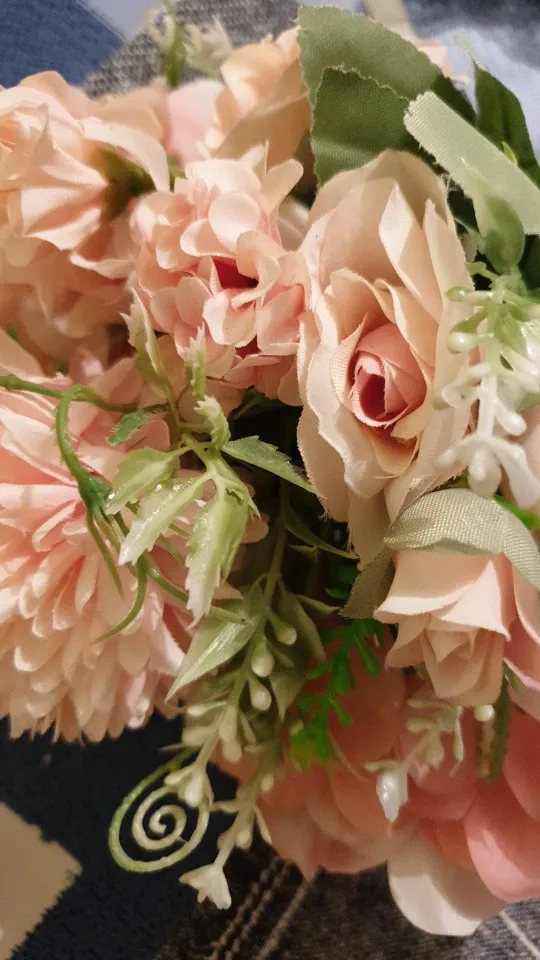 Прошло 2 недели, чтобы прибыть. Это пластиковые цветы и ткань. Довольно похоже на картинку. По цене это нормально