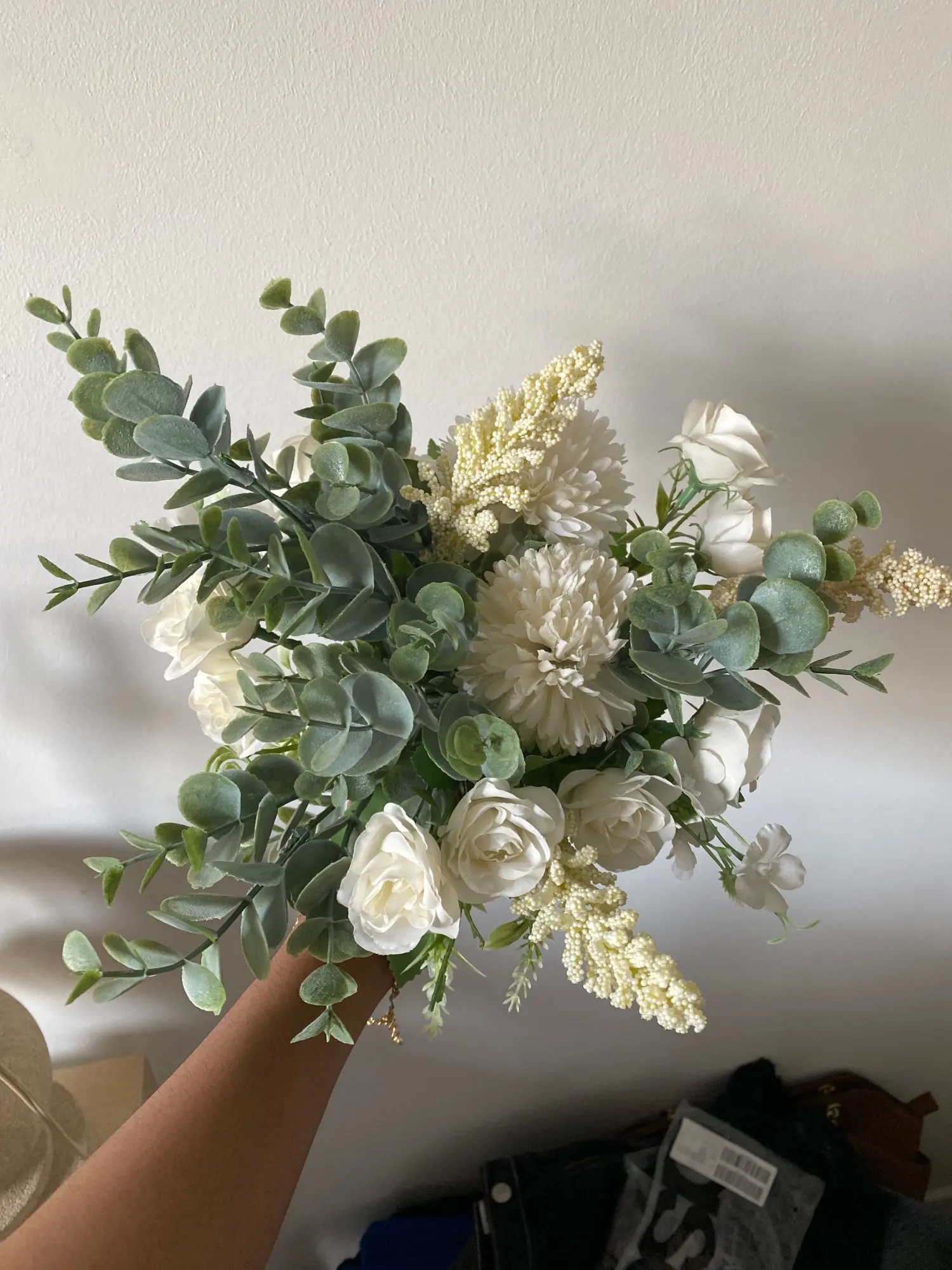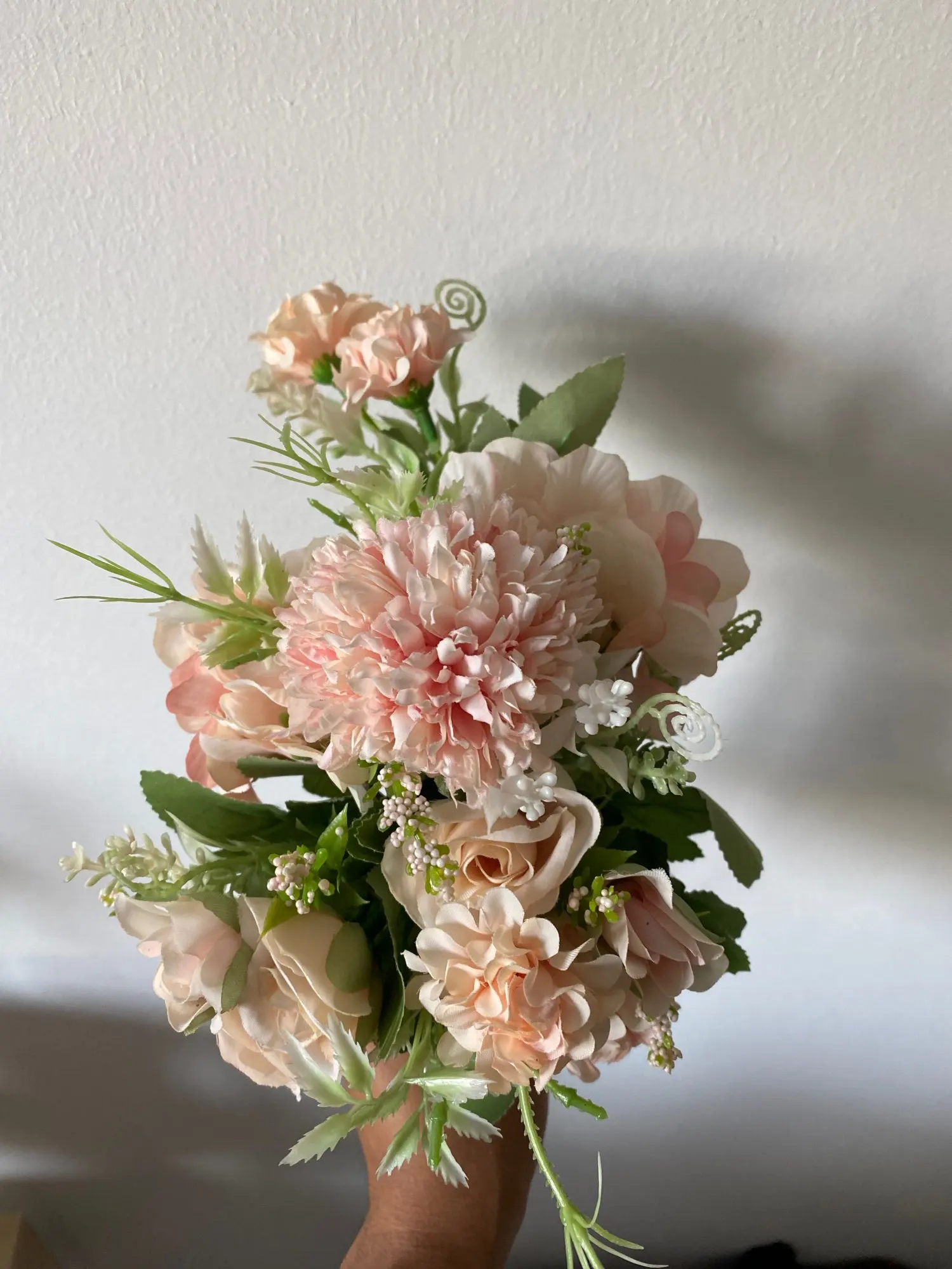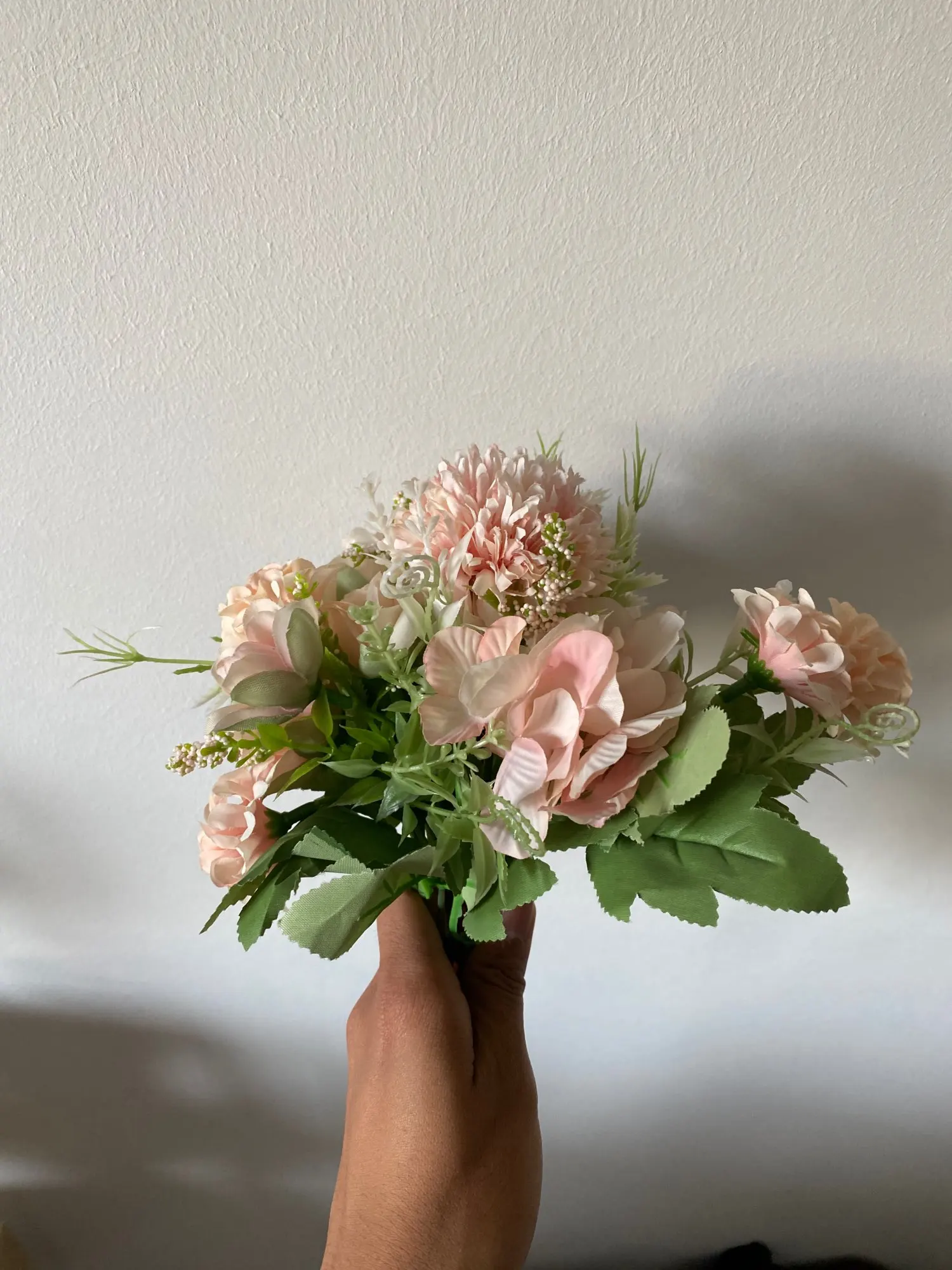 Прошло 2 недели, чтобы прибыть. Это пластиковые цветы и ткань. Довольно похоже на картинку. По цене это нормально