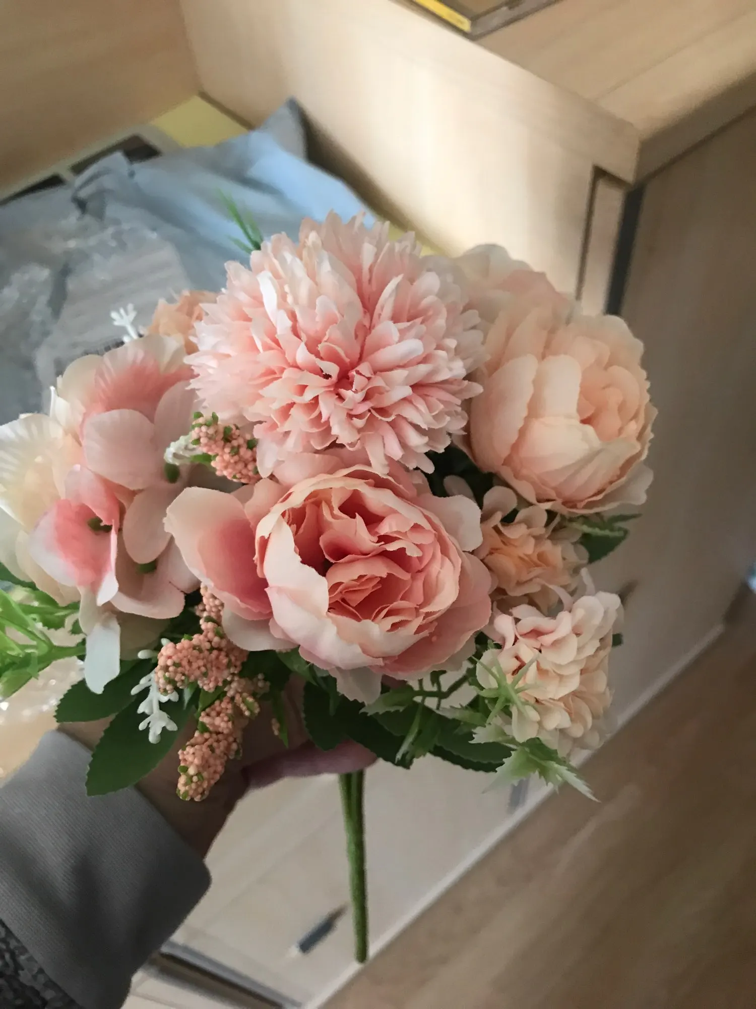 YO CHO Свадебный букет из искусственного шелка розовый цветок пиона, букет невесты, розовая Гортензия, помпон, бутон, ванильный шип, свадебные принадлежности