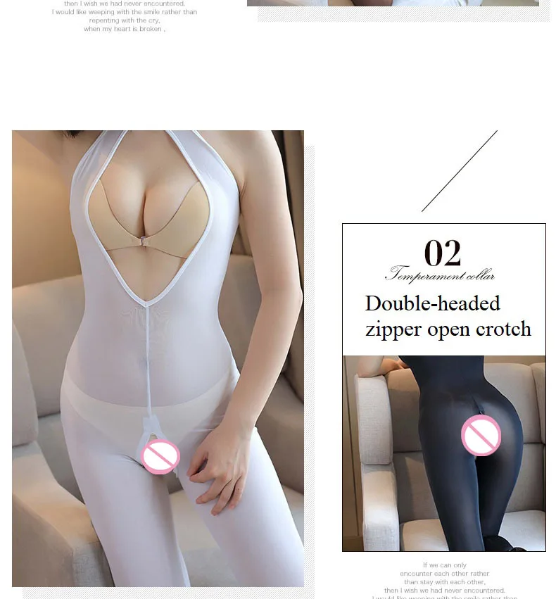Сексуальное женское прозрачное боди с открытой промежностью на молнии, боди с глубоким треугольным вырезом и высокой эластичной шелковистой поверхностью
