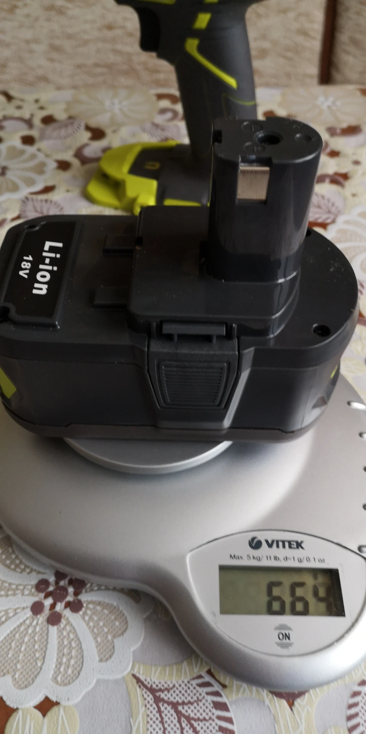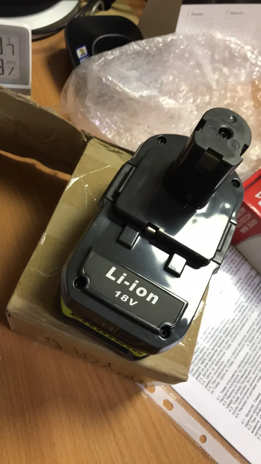 Заказ в Рязань пришёл менее чем за 3 дня. Заказал 30.03.21 ночью, 02.04.2021 днём курьер привёз на дом. Заряжается стандартной зарядкой ryoby, к инструменту подходит, но есть небольшой люфт (2-3 мм), на работу не влияет. На приложенных фото аккумулятор рядом с оригинальным 2Ач.