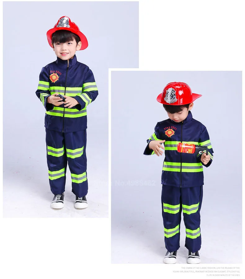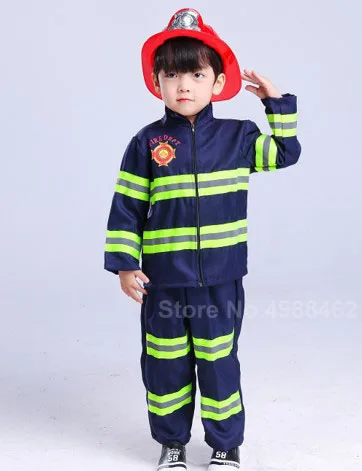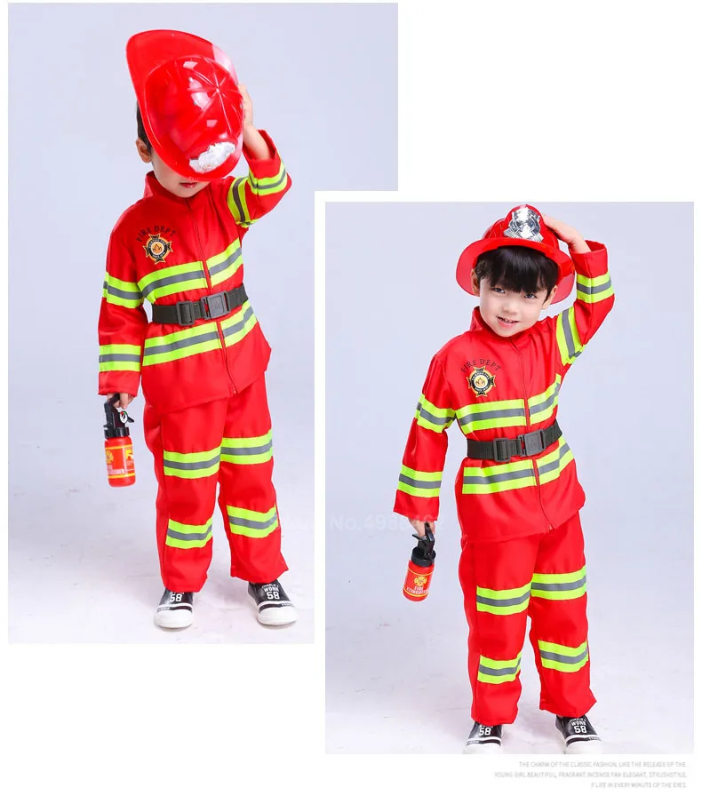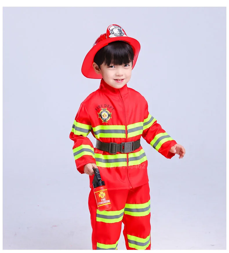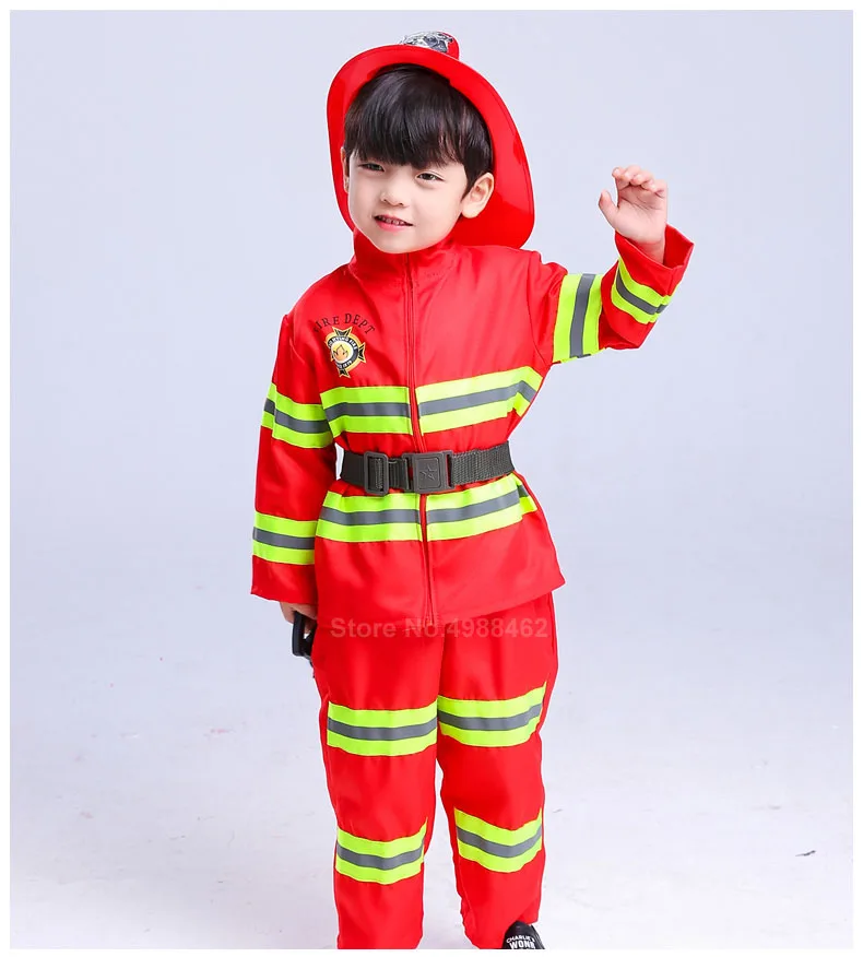 Костюм пожарного для мальчиков и девочек, красный пожарный, костюм для косплея на Хэллоуин, Рождество, день рождения