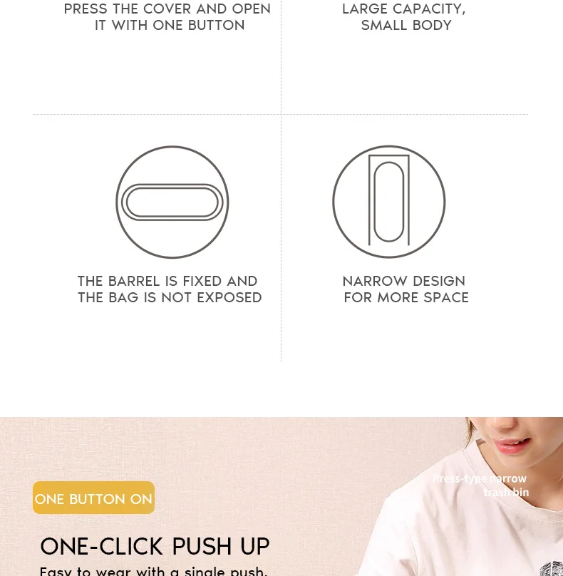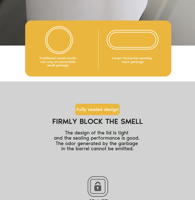 -Удобно использовать, нажмите кнопку на крышке мусорного бака, чтобы открыть, и нажмите крышку, чтобы закрыть.
