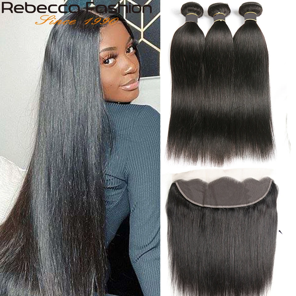 Ребекка, бразильские прямые волосы, фронтальная сетка, пряди натуральных волос Реми, 3 пряди с фронтальной сеткой