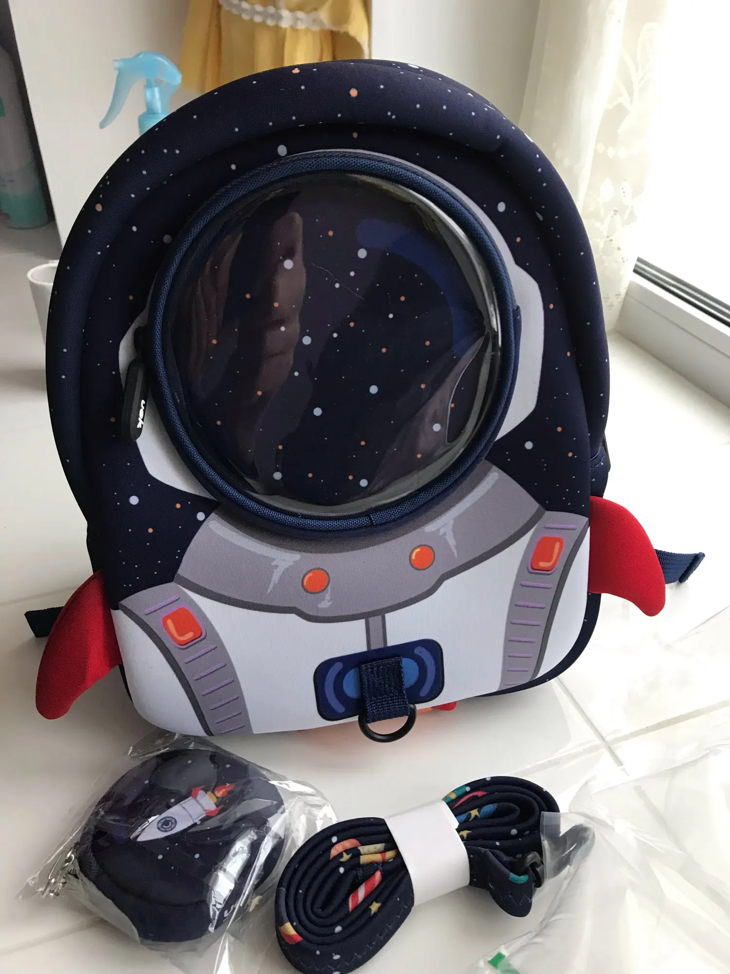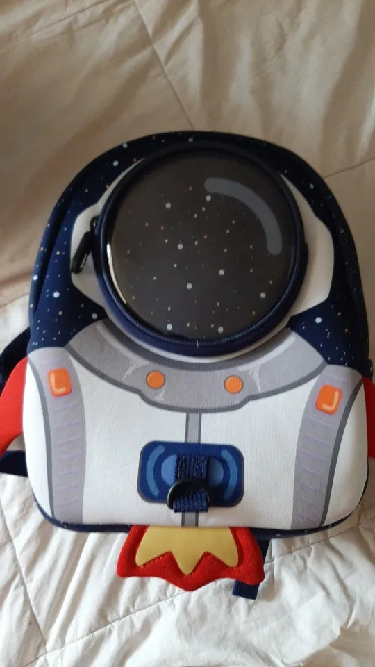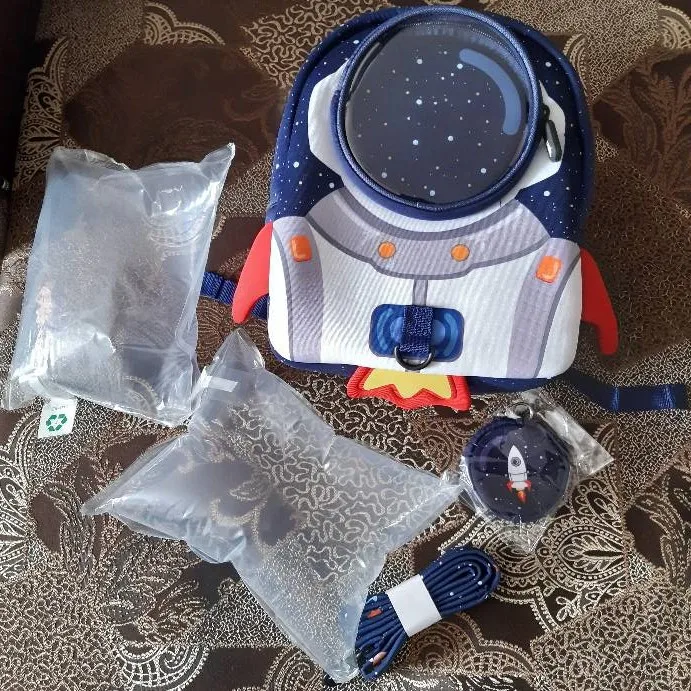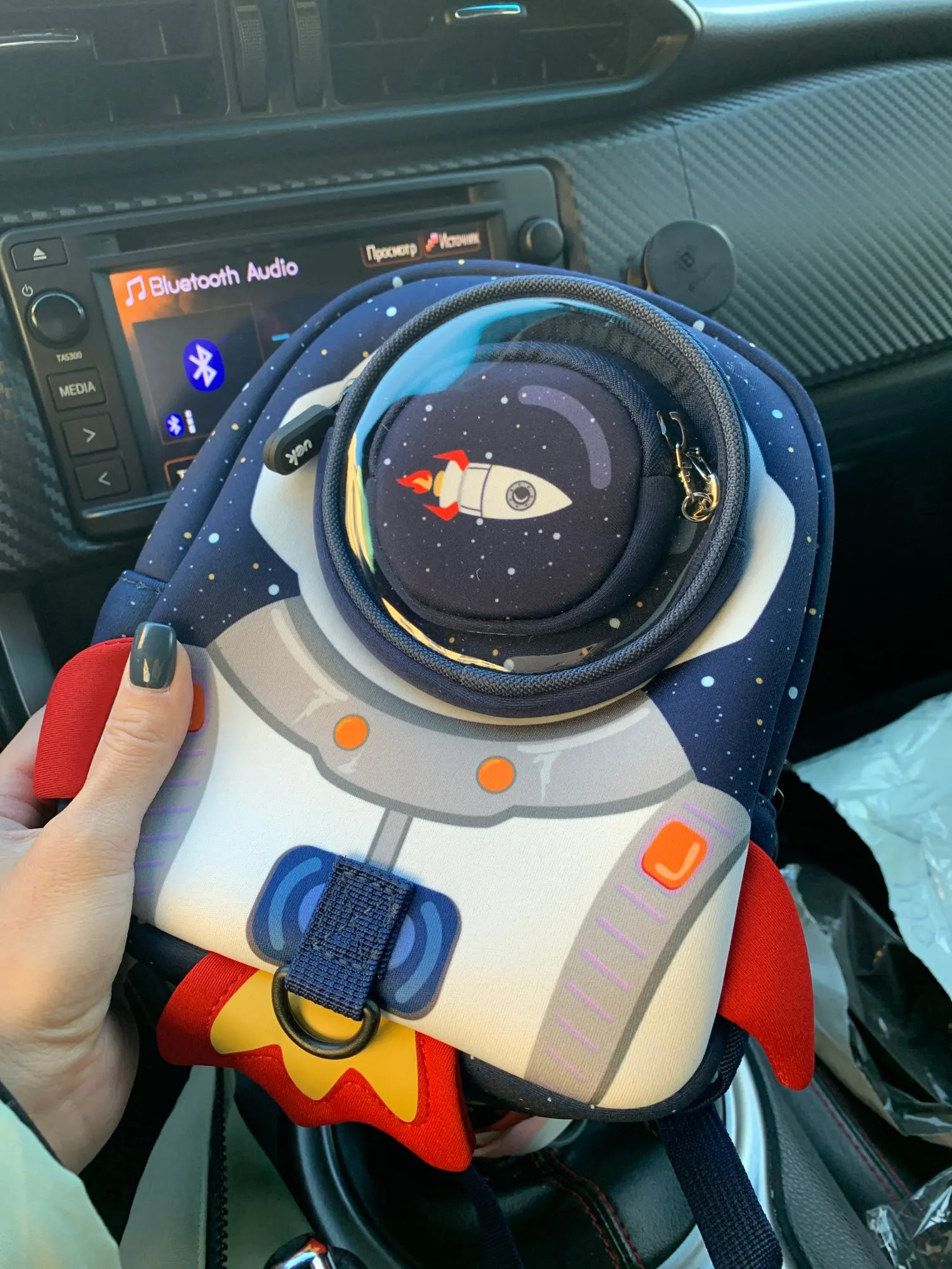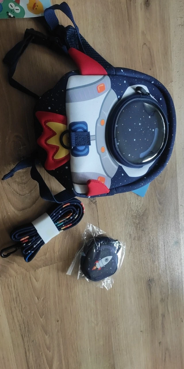 Рюкзак очень крутой! Яркий! Точно соответствует описанию и размерам. Упакован был в целофан, внутри пакетики с воздухом, не помялся. "Поводок" внутри))) сшит хорошо, на ощупь мягонький, как будто с прослойкой паралона. В комплекте маленький круглый кошелёк на молнии с карабинчиком (на фото вставила в прозрачный карман на рюкзаке). Отправили быстро, но долго лежал на отправку на почте. Спасибо!