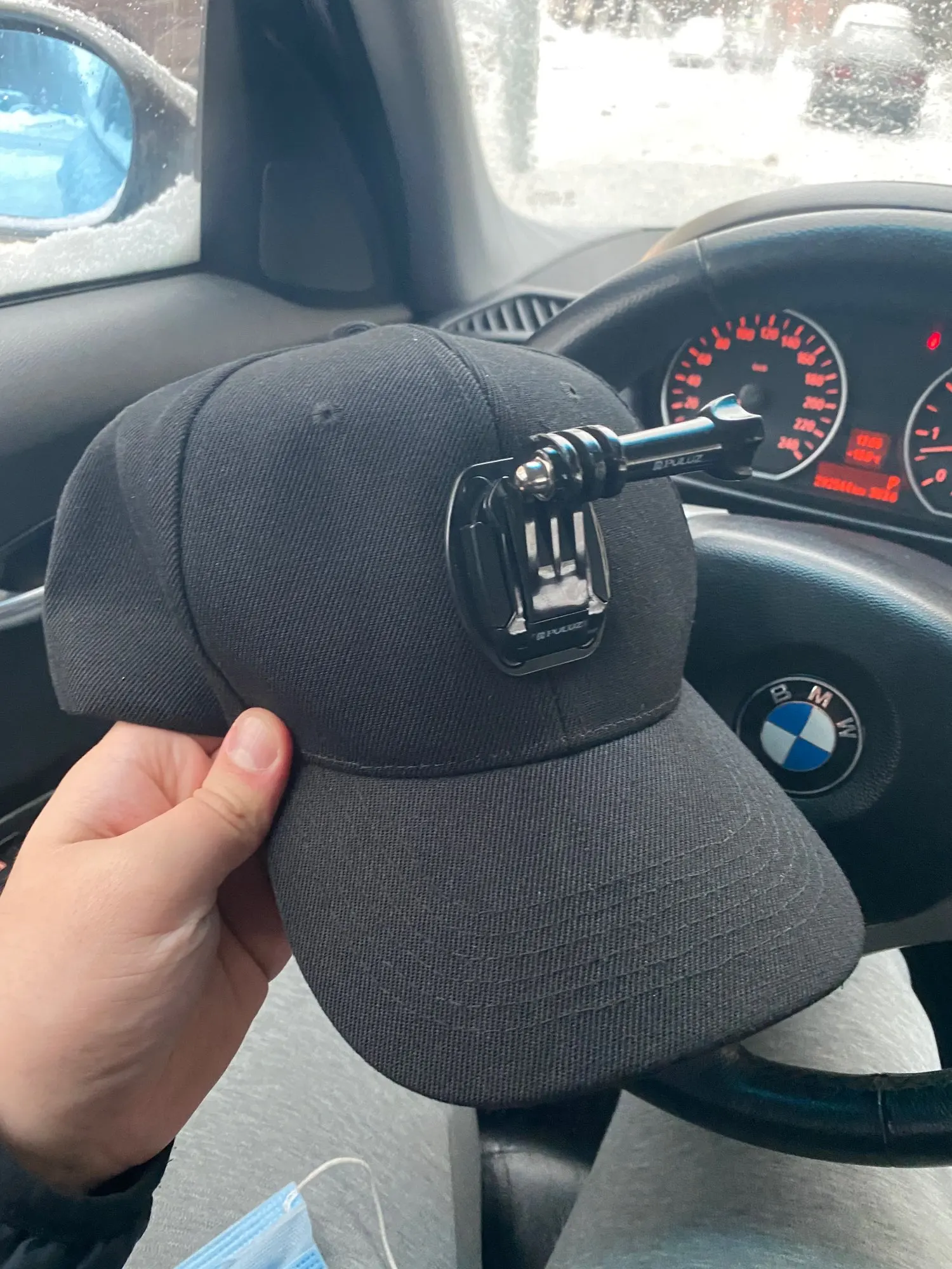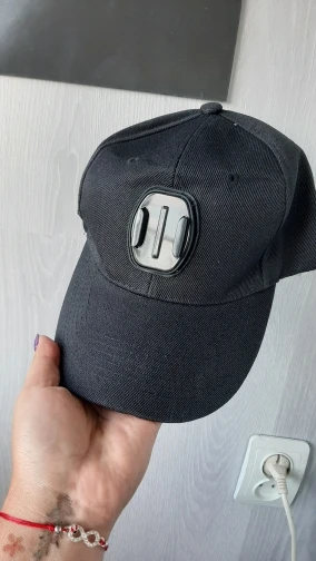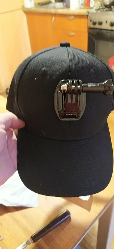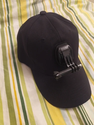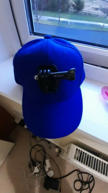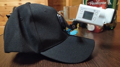 Кепка сама по себе норм. Материал очень плотный - синтетика. Козырёк внутри пластиковый. Но крепление камеры не по центру и шов это усугубляет, в результате камера смотрит в бок. Возможно так повезло только мне. Сам по себе вариант крепления на лбу кепки как-то не очень, так носить не буду, переделал на козырёк.